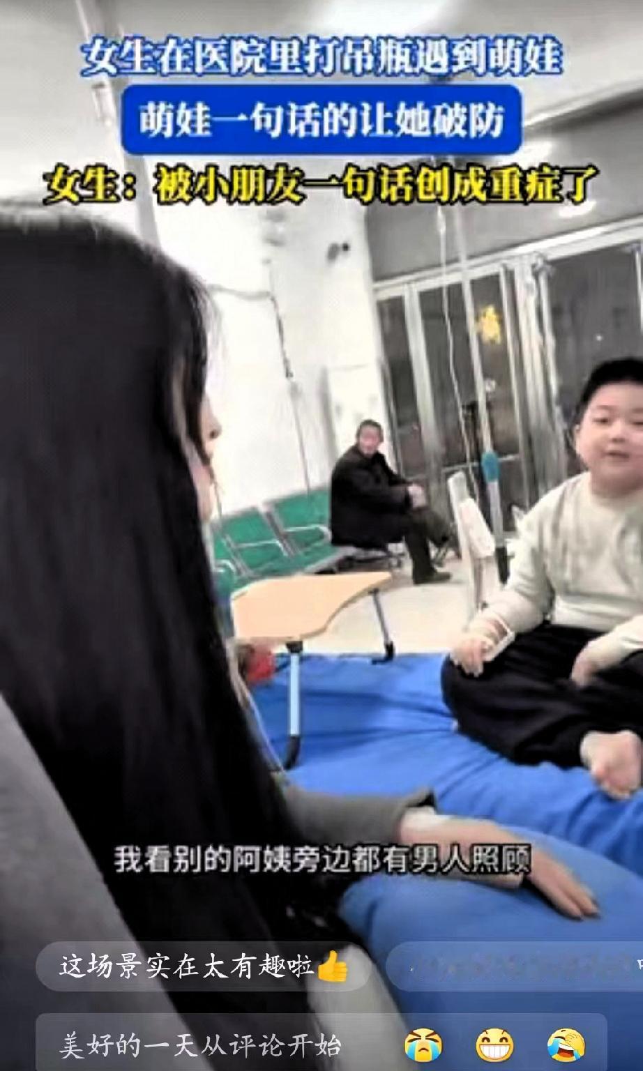 笑不活了!山东一女子因感冒去医院打吊瓶,不料隔壁床的小男孩一句话,给她整破防了…