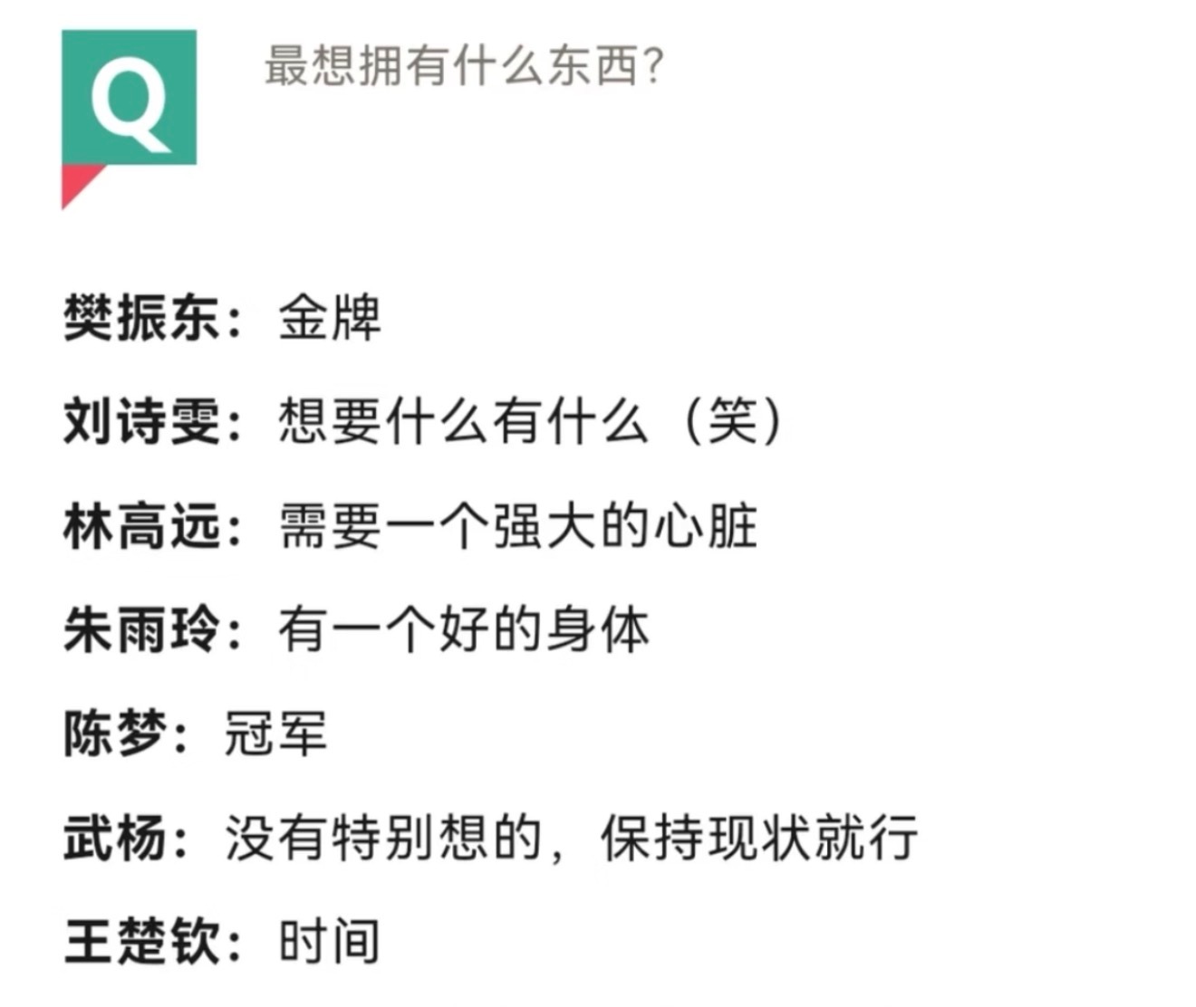 大家都实现了各自想要的东西,要金牌的拿金牌,要好身体的健康回到了赛场,要时间的也