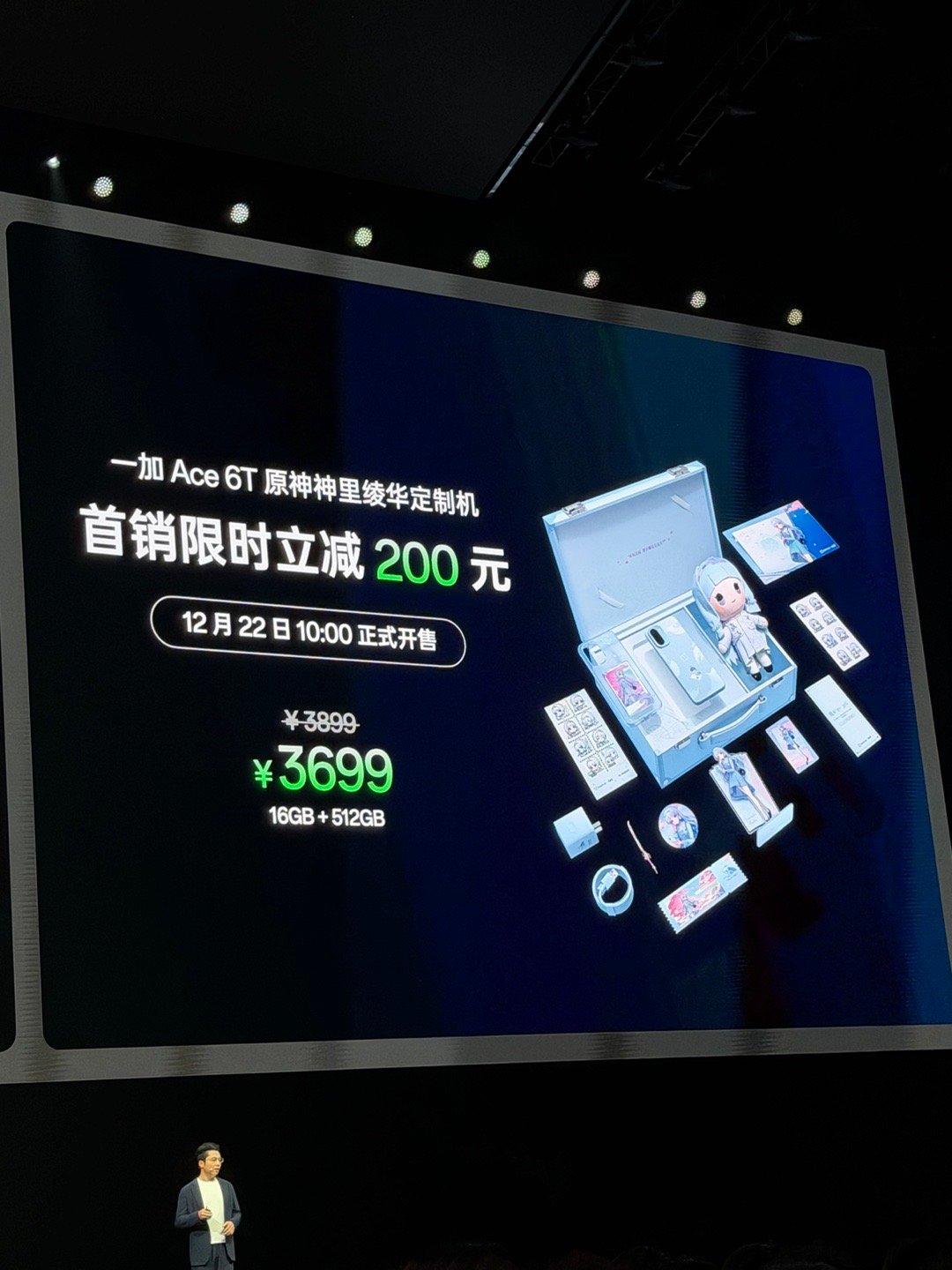 一加 Ace6T 原神神里绫华定制机礼盒上市,16+512GB 首发价 3699 元,买不买• 定制机身与系统主题• 保护壳搭配可替换主题卡• 主题充电配件套装• 限定毛绒公仔• “雾切之回光”造型卡针• 镭射票、纪念票与海报• 亚克力立牌摆件• 叠闪马口铁徽章