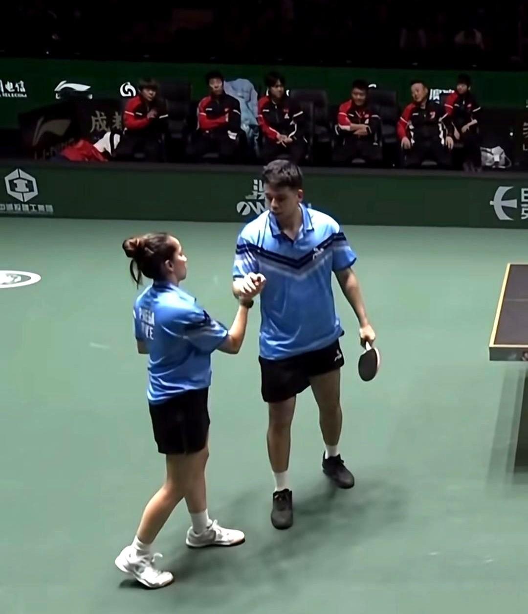 瞧瞧人家智利这混双,虽然球打输了,但是该有的都有,不止握手,还贴脸。 这句话是在提醒现场后方的人员学习这种赛场礼仪,解说亚当提到成都氛围好,还调侃了相关情况。 赛场礼仪是尊重对手的基本,成都的友好氛围有目共睹,咱们的运动员也一直展现着得体的赛场风度,这种正向的相处方式值得大家重视。