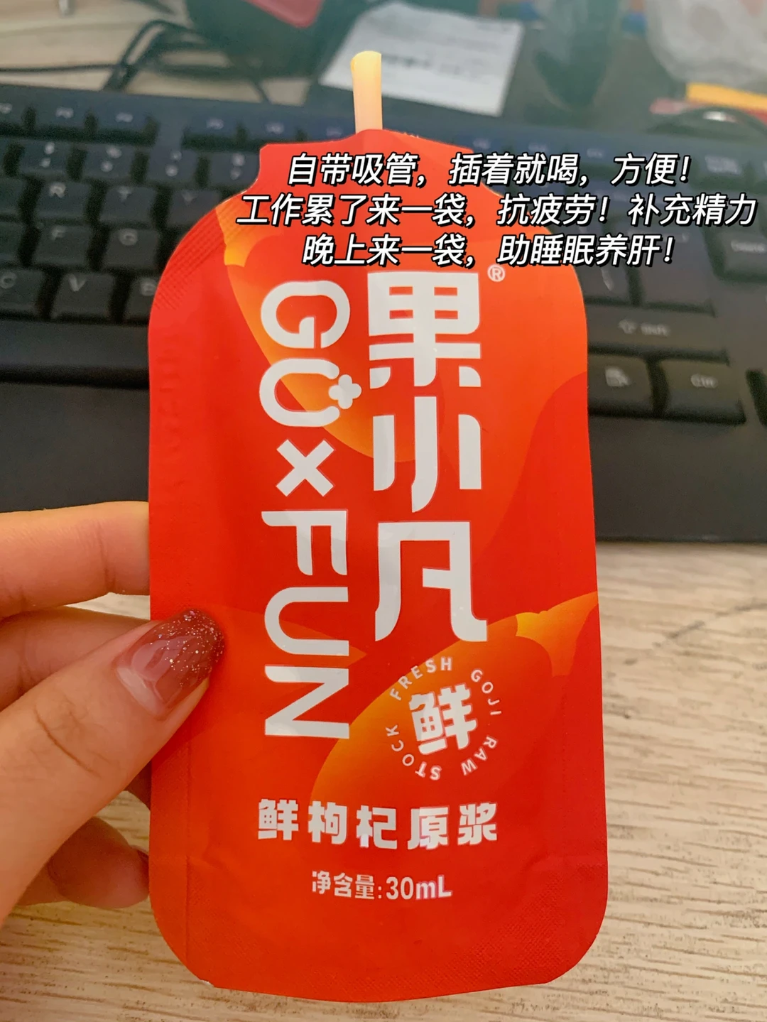 📣:像我们减肥人是不能熬夜的!因为经常熬夜就不掉秤 会焦虑!就睡不着!减肥期睡得好能促进肝脏排 毒减肥就越快呀!我现在喝介个枸杞原浆,枸杞富含多糖抗疲劳 助眠,护肝!zei营养!入口酸酸甜甜的很好喝,独立小袋直接拿办公室喝身边同事都被我安排上了!好东西大家一起喝!