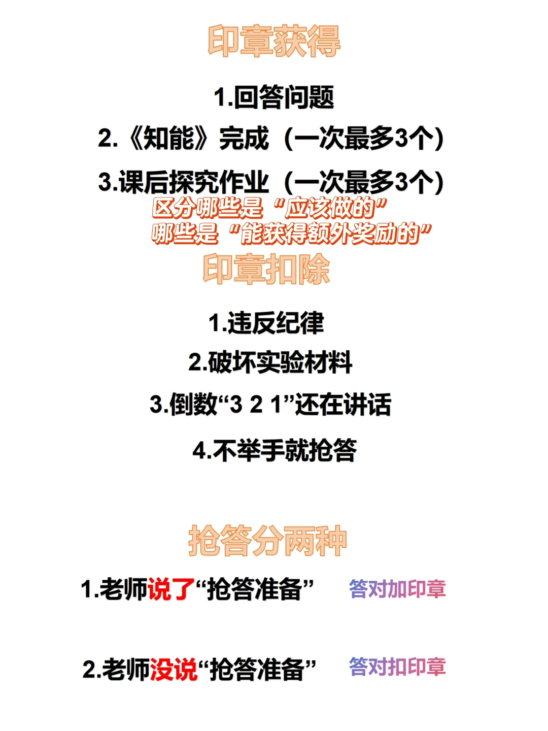 老师没说“抢答准备”就抢答,【答对】的同学扣印章