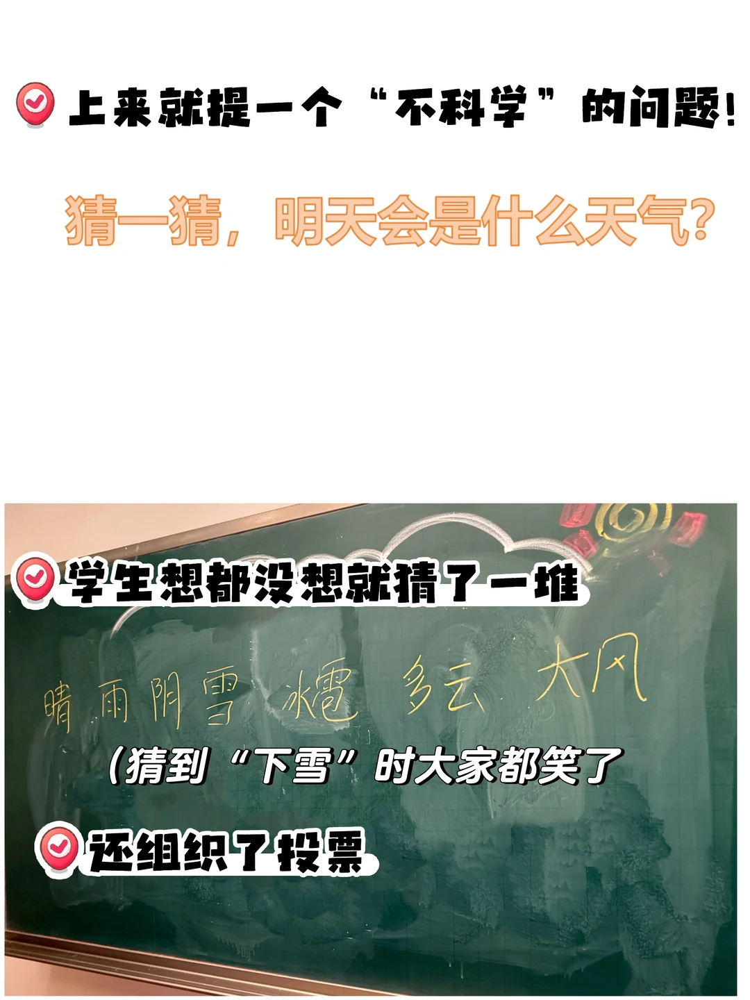 一本正经地把学生的猜测写上黑板,还组织了【集体投票】