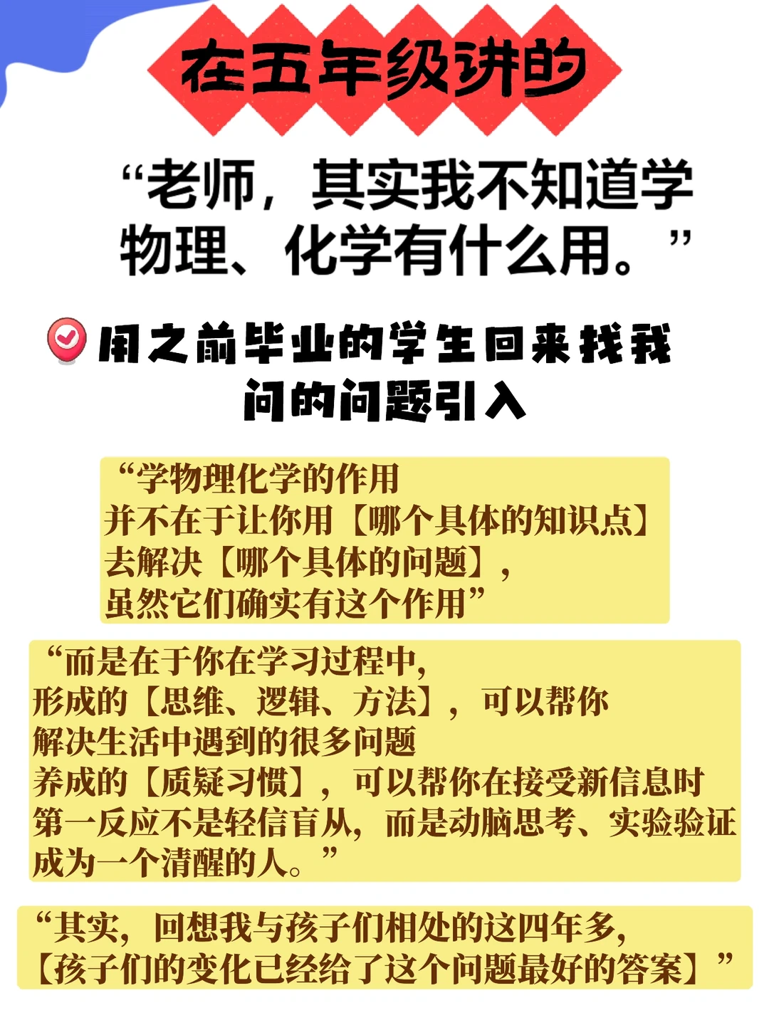 今年没有让家长“试做”实验hhh 因为想走的班比较多!想省点时间! 于是把科学课变成故事, 用【讲故事】的方式开家长会! 感觉文字介绍再多的“科学有多重要”,不如用【具体的故事】,让家长【感受到孩子们科学课在做多么了不起的事情!】 家长会流程 1️⃣科学课故事 2️⃣科学课与初中课程的联系 3️⃣怎么学科学 4️⃣科学课要求 (除了1️⃣以外,其他的和去年差不多)