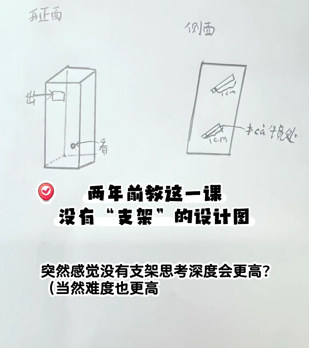 🧐但是又一想,之前是【一组完成】一张设计图,可以“学霸带飞”;今年是每人【单独完成】,凭设计图才能领到镜片,带上支架确实降低了“门槛”