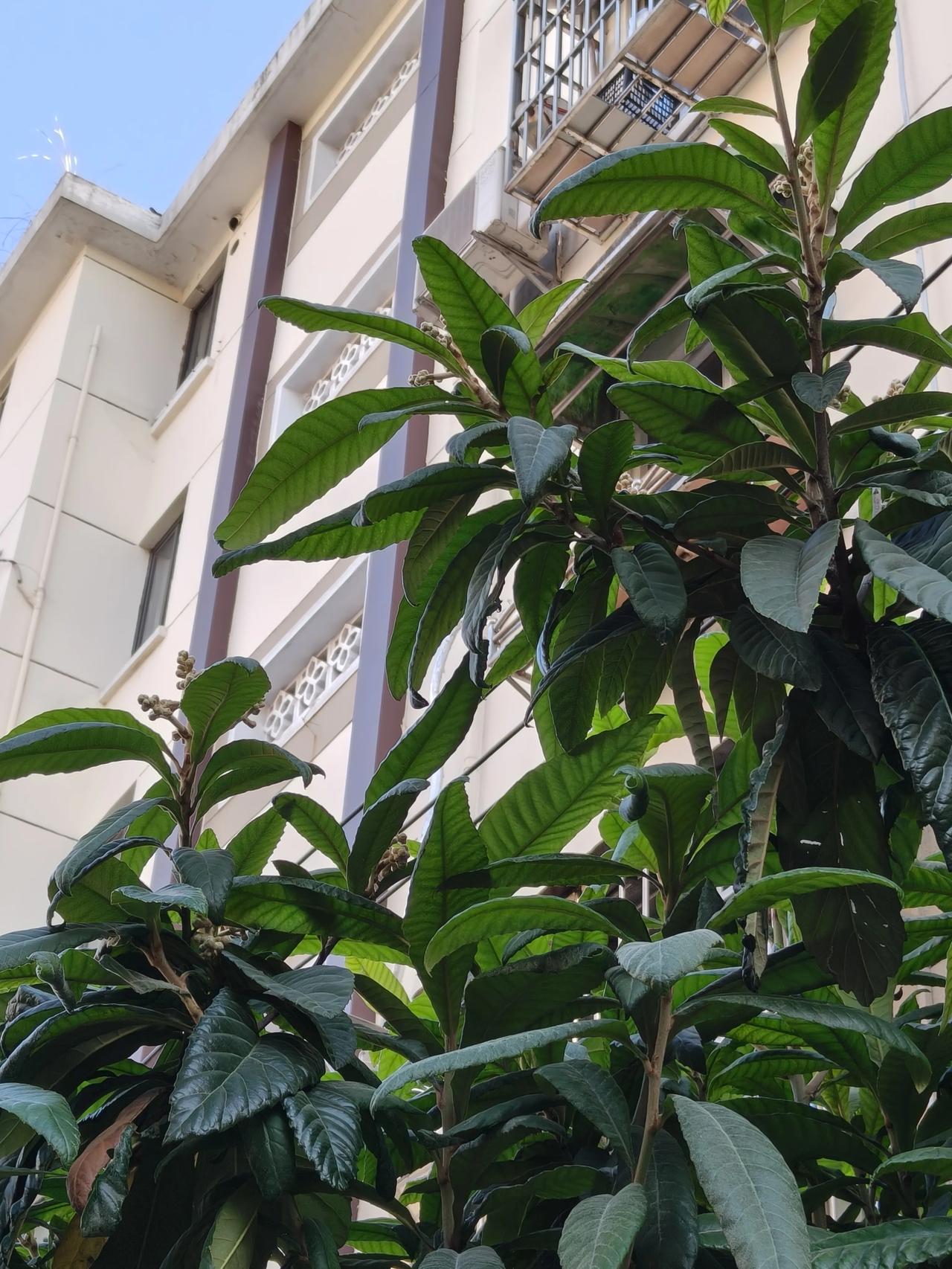 自行车🚲停在这个位置挺好的, 枇杷树叶子又肥又厚,已经🈶小花苞啦~[赞]