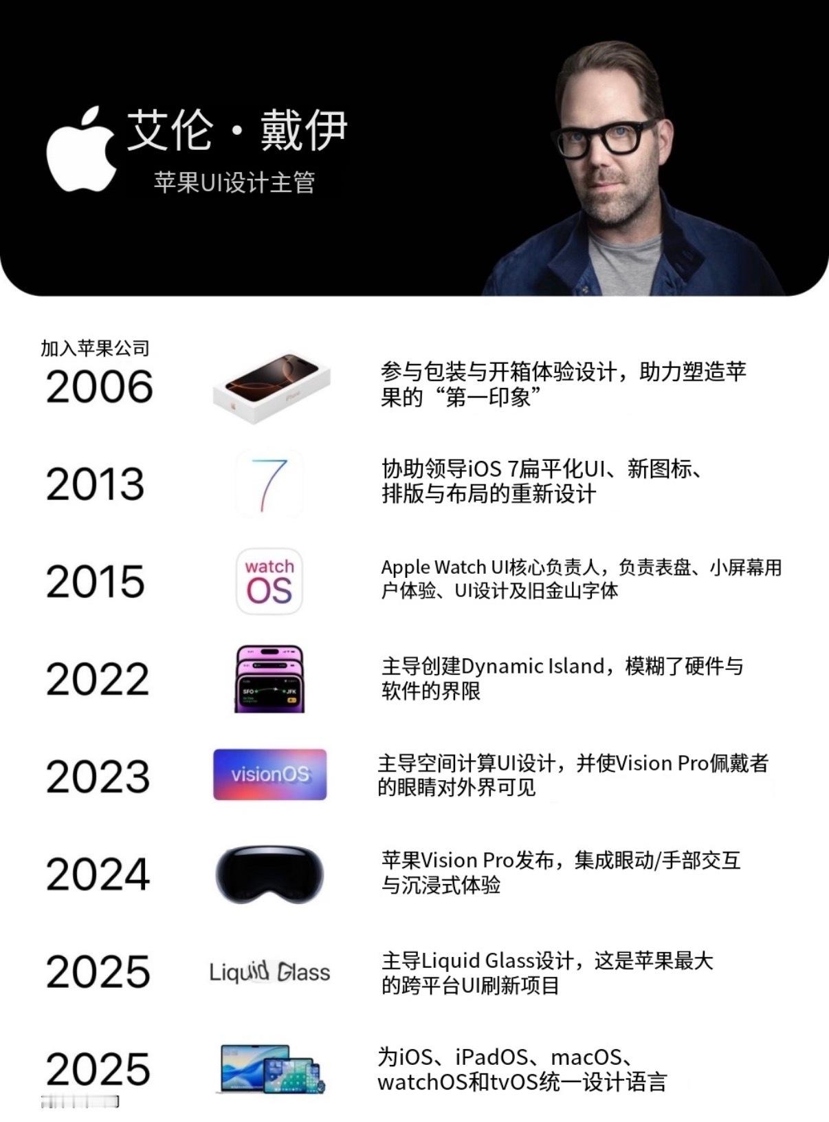 苹果的又一次重大的人事变动,iOS 26 液态玻璃设计主管要离职加入 Meta 担任首席设计官了。Alan Dye 可以说是苹果的灵魂人物,从苹果盒子到 iOS 7 扁平设计,再到 灵动岛和 液态玻璃都是出自他手。很好奇苹果内部出了什么问题,刚走了一位iPhone Air设计师,这设计主管也要走了,库克真难,不行库克你也退了吧。