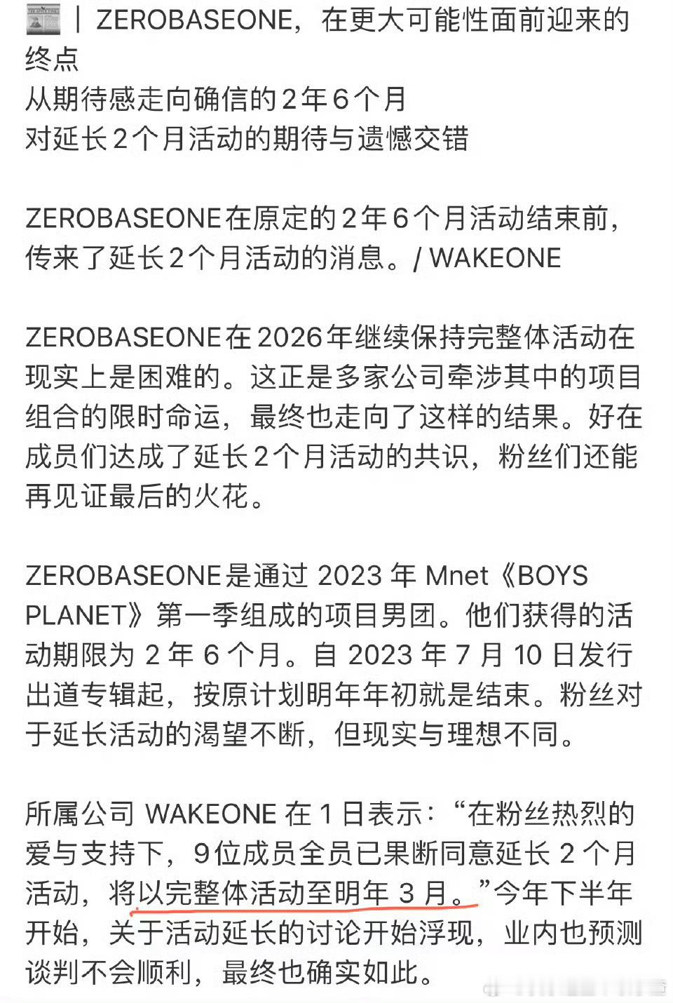 据韩媒,zb1确定明年3月解散,延长了两个月, 解散前还要再发布最后一张专辑,目标是达成1000万张。