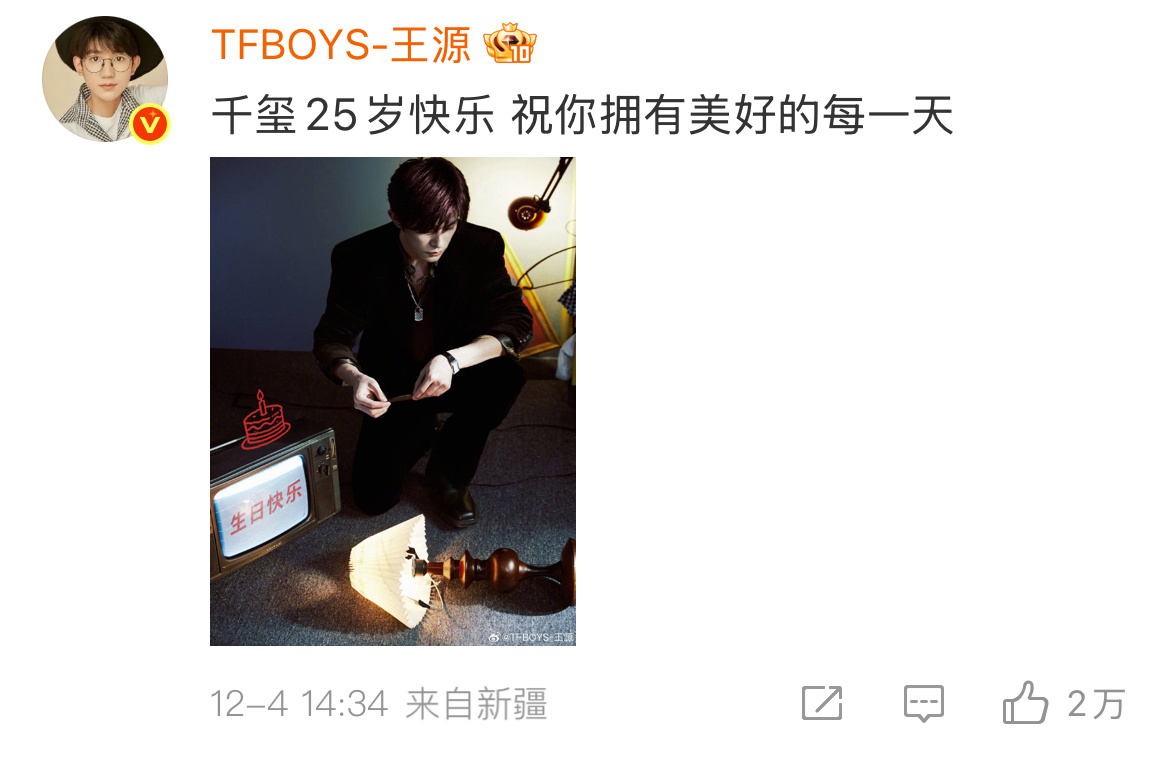 王俊凯王源祝易烊千玺25岁生日快乐!还给玺子贴了25岁生日蛋糕🎂王俊凯王源给易