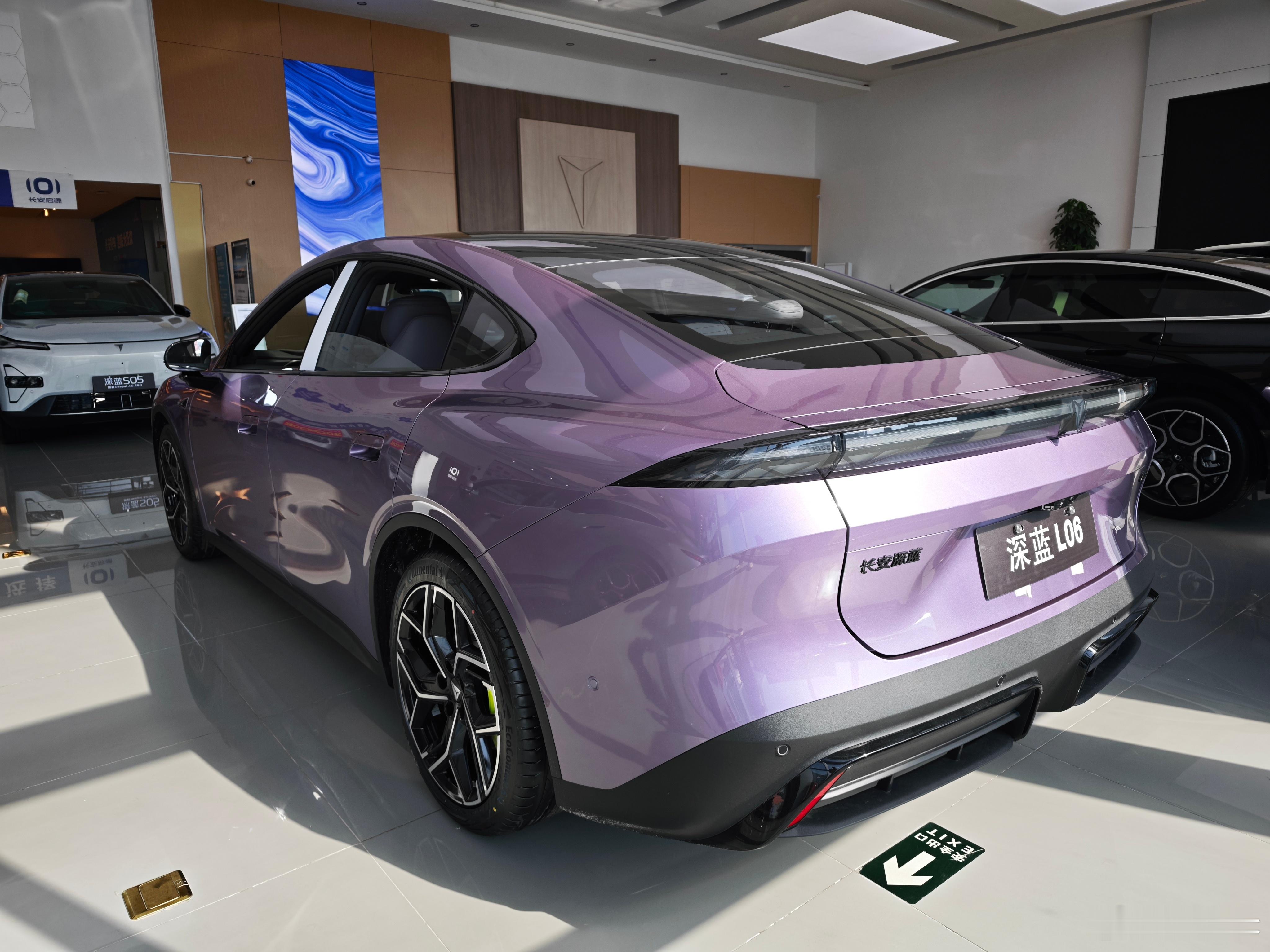 深蓝L06倒是挺有意思的,和启源A06相比明显更年轻化,看起来也更带劲,偏科生的感觉。除了门把手很像SU7,其他地方确实也没有复刻的嫌疑,而且这个门把手是机械半隐藏的,非常好,彻底文艺复兴。外观喷漆质感也挺高级的,阳光照耀下有闪粉。轮胎是马牌EC6,但卡钳罩这事我就持保留意见了。坐姿和A06类似,后排腿部空间不如但头部空间差不多,也是2指的水平,座椅明显有侧向支撑,夹着的感觉十分运动。后排配置明显低,没有调节不说,中央扶手也全系欠奉,看来完全就是personal car的定位了。后备箱不是掀背,且开口很小,倒也符合定位。前排的体验还不错,内饰看起来摸起来都明显比启源更有质感,总体风格更有环抱感,仪表台的装饰凸起不小。console区域的饰板是车身同色的涂漆面板,比普通的钢琴漆更具巧思,也更匹配内饰配色。中控屏是深蓝传统的向日葵屏,车机也是传统UI,设计高级感我觉得不太够,如果能认真做一下UI和字体会好很多。全车只有副驾驶有零重力和座椅按摩,这点不够好,建议起码把按摩给主驾驶一下吧。这车和启源A06之间的确是个很有意思的选择题,但我看了实车以后感觉它俩很好做选择:启源明显更家用,深蓝明显纯运动,听说这个磁流变悬架也很紧绷,试驾车还没到,有机会得好好试试,看看能否解决一如既往的底盘短板。不过神奇的是,启源居然配了双叉臂前悬,深蓝的结构是麦弗逊但却配了磁流变黑科技,这是怎么想的……