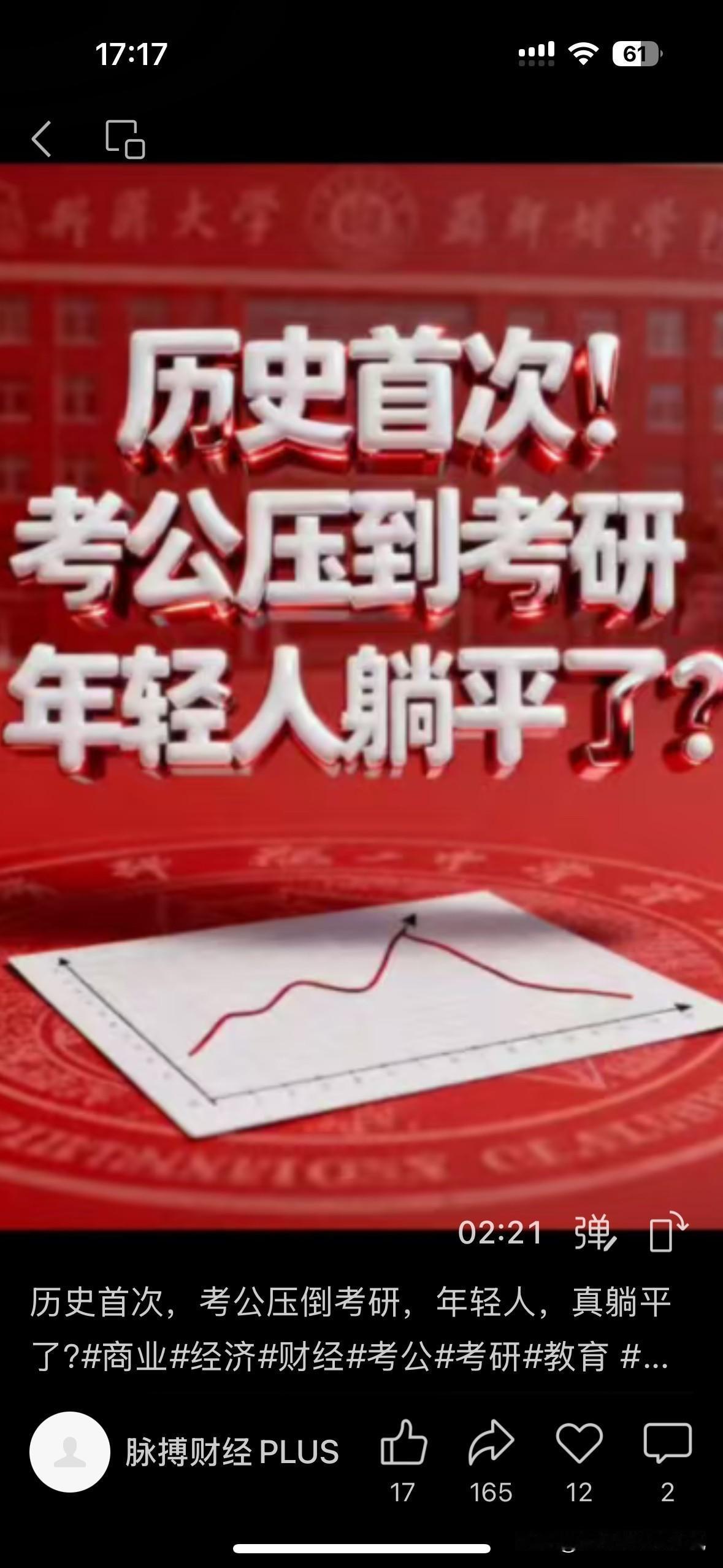 “国考”和考研,两条曲线的交叉,更像是一次关于风险偏好与安全感的集体重估。 大四考公上岸的侄子说他那些考研成功的同学,不约而同都在考公; 或许这是很多人放弃考研的最直接原因,与其再读几年多考一次不如直接大四毕业前考公,幸运的话一步到位,直接上岸。 但此岸真的是此岸吗? 考公成功,人生就此顺遂了吗?就没有压力焦虑了吗?就功成圆满了吗?就过的和别人不一样了吗?