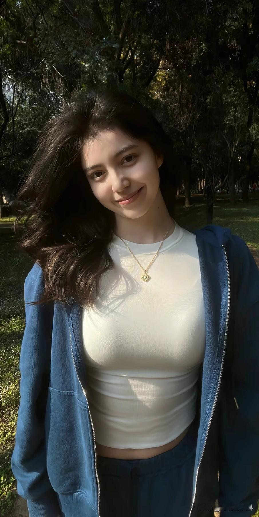 阳光下的清新自拍,白色上衣与蓝色外套的完美搭配,尽显青春活力!