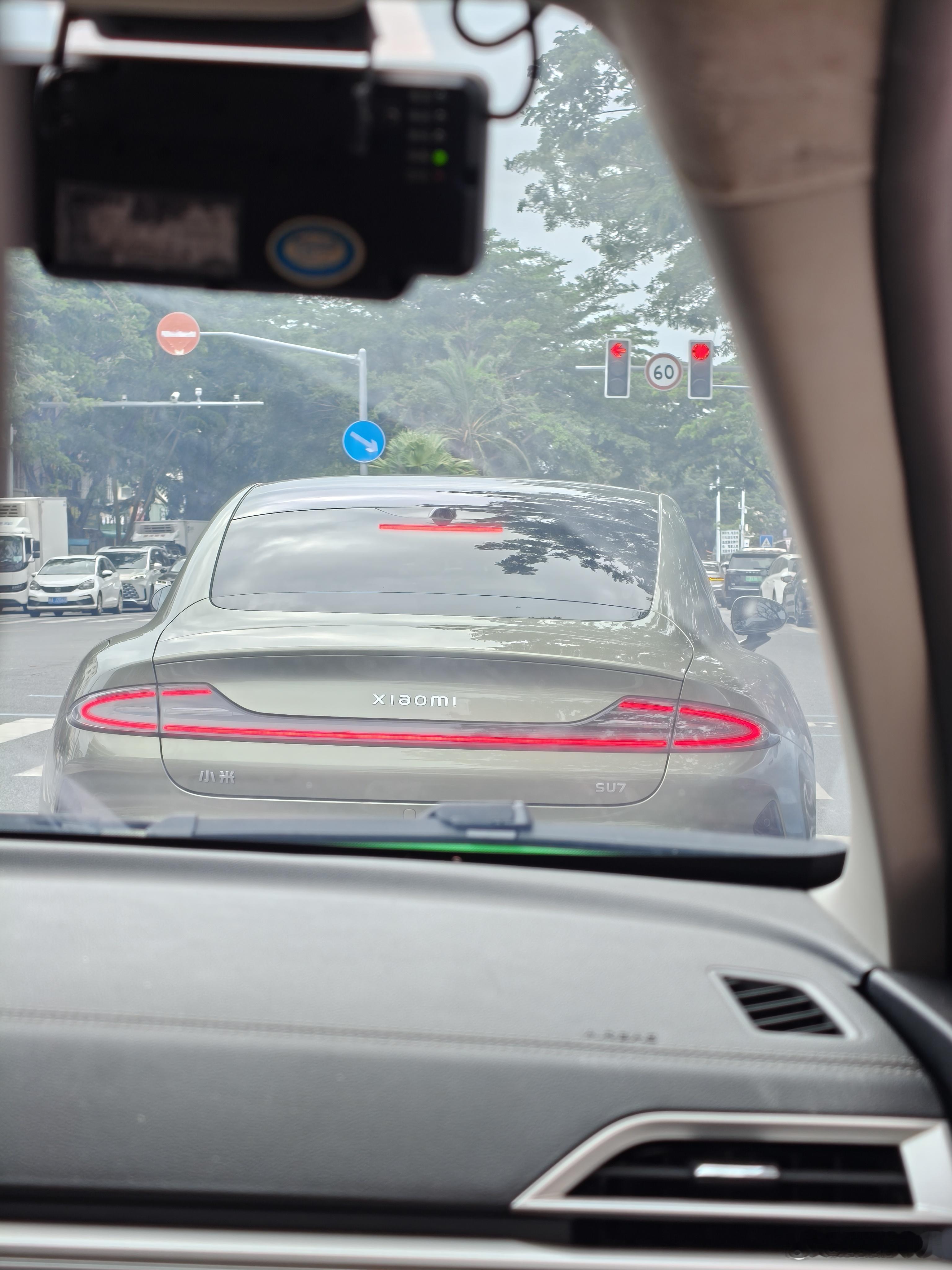 刚在红绿灯路口看到一辆小米SU7,确实很帅,绿灯亮起时起步也很快。