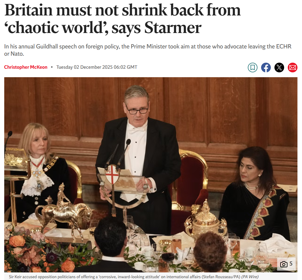 【对英国利益的最大威胁从来不是中国,而是它自己的“脑子”】12月1日,英国首相斯塔默在伦敦金融城晚宴发表外交政策演讲时,一面称中国是“世界三大力量之一”,坦言英国“无法承受脱钩代价”;另一面却又复述五角大楼与政府通信总部联合起草的剧本,声称中国对英国构成“国家安全威胁”。这番自相矛盾的表演,既不像战略清醒,也不像政治智慧,倒像是在用同一张嘴同时吹两支调子完全相反的笛子,结果只有刺耳的杂音。有趣的是,仅数天前,其国家安全事务顾问乔纳森·鲍威尔在北京上演了同样的戏码:含糊其辞地呼吁“对话”与“合作”,却对一个中国原则避而不提。在外交辞令的世界里,“不说”往往比“说错”更意味深长。这种精心设计的模糊,不是疏忽,而是策略:一边想稳住北京的善意,一边向华盛顿递上忠诚的投名状。对中国而言,信号再明确不过:伦敦想要中国的市场、资本与供应链,却不愿付出哪怕一句对核心利益的基本尊重。它幻想能零成本地“遏制”中国,同时满载经济红利而归。这种算盘打得如此精明,以至于忘了中国早已不是那个任人摆布的“沉默伙伴”。中国理所当然地表达了愤怒,斯塔默计划中的访华之旅瞬间被阴云笼罩。讽刺的是,英国并非孤例。这套“既要合作、又要施压”的双面戏码,如今已在欧洲多国上演,尤以德国为甚。还记得10月,临行前48小时突然取消访华的德国外长瓦德富尔吗?他终究还是来了,就在下周(12月8日至9日)。此前,他一边急切寻求中方在稀土、芯片等关键领域的支持,一边却在台海、俄乌等问题上高调批评中国,甚至暗示可能动用欧盟《反胁迫工具法案》施压。这般“左手要饭、右手打人”的做派,与约翰牛如出一辙,如同莱茵河水流进了泰晤士河。现实是残酷的:欧洲经济正面临增长停滞、工业空心化、能源焦虑三重夹击。德国汽车厂离不开中国电池,英国金融业渴望人民币业务,整个欧洲大陆比任何时候都更需要中国的市场需求。可政治上,不少领导人却把美国的战略路线图当作救生衣,死死抱住不放。结果呢?既得罪了最大贸易伙伴,又未能真正增进自身战略利益,典型的“两头落空”。最荒诞的莫过于中国驻伦敦新使馆项目。这块地早在2018年就已购入,却因当地政客和媒体轮番炒作“安全风险”、将其当作外交筹码,导致搬迁一拖再拖。英国想从对华关系中获利,却拒绝提供建设性交往的最低条件;一个自诩“全球性大国”的国家,在处理基本外交事务时,表现得却像个斤斤计较的区议会。而在台湾问题上,英国更是从言辞试探滑向公开挑衅。国防大臣希利竟公然宣称“愿为台湾而战”,并派遣“威尔士亲王”号航母万里迢迢奔赴印太“彰显决心”。嘴上重复着承认一个中国原则,手上却在悄悄拆墙——频繁接待台当局官员窜访、升级与台官方往来、在涉疆涉港南海等问题上无端抹黑,深度嵌入美国“印太战略”……这一切,无不指向同一个目标:“掏空”一个中国原则的实质,只留下一具空壳外交辞令,以便在地缘博弈中左右逢源。那么,究竟是什么在驱动英国这套自相矛盾、左右摇摆的对华策略?答案并不隐晦。这是一套心照不宣的政治算计,既服务于唐宁街的国内政治需要,也试图在中美博弈的夹缝中“薅点羊毛”。对斯塔默而言,在涉华问题上摆出强硬姿态,首先是一道“政治保险”。在英国舆论场和情报体系普遍弥漫着对华猜疑的氛围下,任何被贴上“对华软弱”标签的首相,都可能迅速沦为政治祭品。于是,最安全的做法就是复述华盛顿的台词:称中国为“系统性挑战”,渲染“国家安全威胁”,哪怕这些说法与现实南辕北辙。这种“嘴硬身软”的策略,还有一重妙用:它为英国在经贸层面悄悄与中国深化合作提供了“政治掩护”。一边在安全议题上高调站队美国,一边在私下推动金融、绿色科技、教育等领域的务实合作,仿佛只要把“遏制”喊得足够响,就能心安理得地继续享用中国市场红利。更微妙的是,英方似乎还幻想通过在一个中国原则上制造模糊空间,来换取中方在其他议题上的让步,比如在俄乌问题上对俄施压。这种将核心主权问题当作交易筹码的思路,是对当代中国政治逻辑的根本误判,伦敦的衮衮诸公,显然早已没有了老前辈们的老谋深算,或者说老奸巨猾。英国的做法不仅自相矛盾,更透着一股轻慢,仿佛将中方划定的红线当作了外交修辞的练习题。将模糊性当作政策工具,不是灵活,而是缺乏诚意。北京对此看得一清二楚:它看到的不是一个秉持原则的伙伴,而是一个试图在中美之间“骑墙捞利”、却不愿承担任何真正责任的投机者。如今,局面对英国愈发不利。伦敦自以为是在“管理风险”,实则是“加剧风险”。它既想维持“全球英国”的体面幻象,又深陷对美依赖的现实泥潭,结果政策支离破碎,战略方向迷失。中国的立场始终清晰:若英国愿谈合作,我们随时欢迎。对话之门永不关闭。但某些原则不容讨价还价,信任必须以坦诚为前提。今天的中国,发展动力源于内生韧性,其国际地位无需他国背书,其繁荣也不依赖于任何外国首都的态度。若伦敦幻想以中国核心利益为杠杆,通过政治胁迫换取经济让步,那不仅是对中国实力的低估,更是对中国决心和中国人民政治成熟度的严重误判。更深层的悲剧在于:英国似乎仍困在“日不落帝国”的残梦里,妄图用19世纪的地缘政治