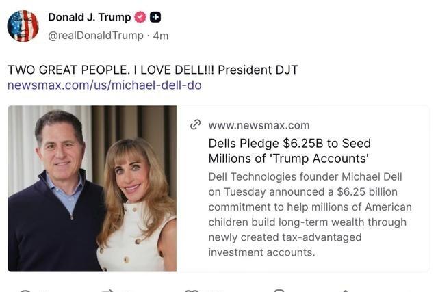 迈克尔·戴尔与妻子为2500万名10岁以下美国儿童每人提供250美元启动投资美国账户:特朗普总统今年7月4日签署的投资美国法案规定从2025年到2028年每个新生儿获得1000美元启动资金 电脑巨头戴尔创始人迈克尔·戴尔突然宣布,他和妻子苏珊要拿出62.5亿美元,帮2500万名10岁以下美国小孩每个账户先打250美元进去,叫“投资美国账户”。这事儿听着就牛,背后其实是特朗普今年7月4日签的那个《投资美国法案》,里面说从2025到2028年,每出生一个美国小孩,政府就给1000美元起步金。简单说,这法案想让小孩从小就沾点股市的边儿,别光靠救济过日子,而是学着攒钱投资,变成未来的老板或房主啥的。 先说说这个法案咋来的。特朗普第二任上台后,国会今年7月4日独立日那天,通过了那个大包大揽的税改加支出法案,里面夹带这个“投资美国”条款。财政部负责,从2025年1月1号到2028年12月31号生的美国公民小孩,只要有社保号,就自动开个账户,政府扔进去1000美元。这钱得投到跟踪S&P 500或纳斯达克100的低成本指数基金里,锁18年,到小孩18岁才能动,用来上大学、买房首付或创业。家长每年还能自己加最多5000美元,雇主加2500美元不计税。整个计划预计花150亿美元左右,2026年7月4号正式上线,正好赶上美国建国250周年。特朗普自己说,这不是发福利,是给下一代公平起点,让他们分享美国经济增长的红利。数据上,美股过去30年年化回报7%到10%,1000美元扔进去18年后可能变5800美元,要是家里多攒点,账户能到好几万。 但法案有短板,只盖新生儿,那些2到10岁的小孩呢?就漏了。戴尔夫妇一看机会,就跳出来补位。12月2号,他们在白宫罗斯福厅跟特朗普一块儿公布这笔捐款。戴尔是戴尔科技的创始人,身家1480亿美元,早年19岁辍学用1000美元起家,现在公司年收942亿美元。他俩的基金会从1999年起捐了29亿美元,主攻儿童教育和健康,这次直接放大招。捐款优先给中位家庭收入低于15万美元的邮区小孩,预计盖住同年龄80%的孩子。戴尔科技自己也承诺,给员工小孩匹配政府的1000美元。特朗普转发戴尔推文,说“两位了不起的人,我爱戴尔”,戴尔股价当天涨3.5%。 这套账户设计挺接地气,不像IRA那么死板。钱必须投股市指数基金,避免小孩乱花,但成年后用途灵活。研究显示,有这种账户的小孩高中毕业率高,大学入学率升,买房创业概率大,还少沾犯罪。硅谷风投家布拉德·格斯特纳说,这不光是给1000美元那么简单,是建个平台,让企业、教会、社区都来加钱,共享资本收益。戴尔夫妇也拉了其他慈善家下水,说服他们跟进。比起过去那种撒钱福利,这模式更像教人钓鱼,靠市场滚雪球。 当然,也不是没争议。批评者觉得,这对穷家庭帮助有限,他们哪有闲钱年年加?富人小孩账户滚得快,穷的就慢,可能会拉大差距。像国家妇女法律中心就说,这更像富人税 shelter。专家建议,要真想帮底层,得加收入测试或更多匹配。但总体看,这事儿是政府搭台、企业唱戏的样板,戴尔捐款一锤定音,让计划从纸上落到实处。2026年上线后,父母通过IRS网站或银行就能操作,自动扣税啥的。想想看,一个芝加哥南区小孩,账户从250美元起步,跟着股市走,18年后可能够付大学一半学费,这不比空谈强? 长远说,这可能改写美国财富分配。过去小孩靠父母遗产起步,现在人人有种子基金,等于全民版信托。戴尔自己推文置顶37年前创业故事,说1000美元变帝国,没不可能。特朗普任内多次提这计划,当经济亮点。要是其他企业跟上,像优步、销售力已表态匹配员工小孩资金,教会社区也捐,这生态就活了。总的,62.5亿不是小数目,但对戴尔来说,是战略投。基金会继续推教育项目,美国小孩的财务课本从这儿翻新页。谁知道呢,也许下一个戴尔,就从这些账户里蹦出来。