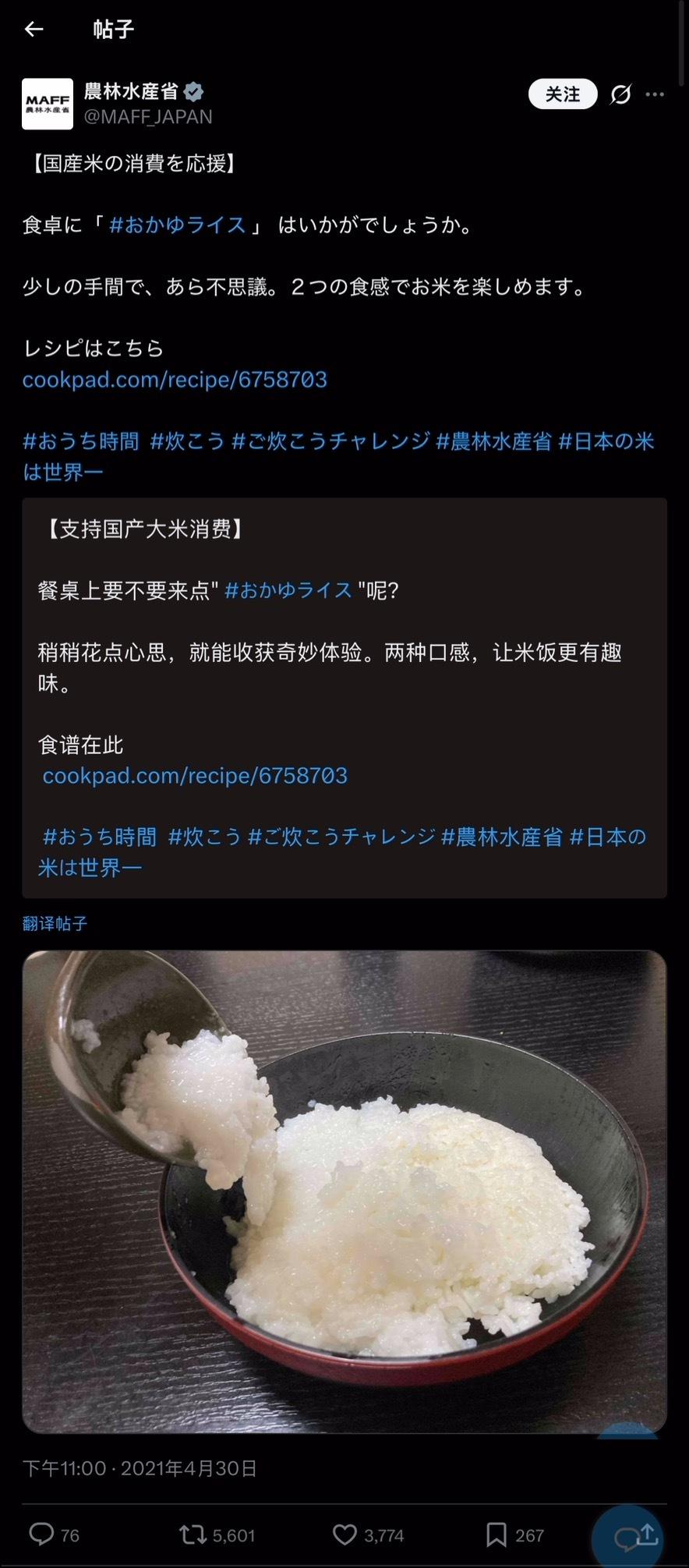 🔻请网友找了一下,日本是真有“白粥盖浇米饭”这种邪门东西。🔻关键这食谱还是日本农林水产省官方上传的。🔻🔻真受不了,这算哪门子发达国家?海外新鲜事热点现场全球抛售日本