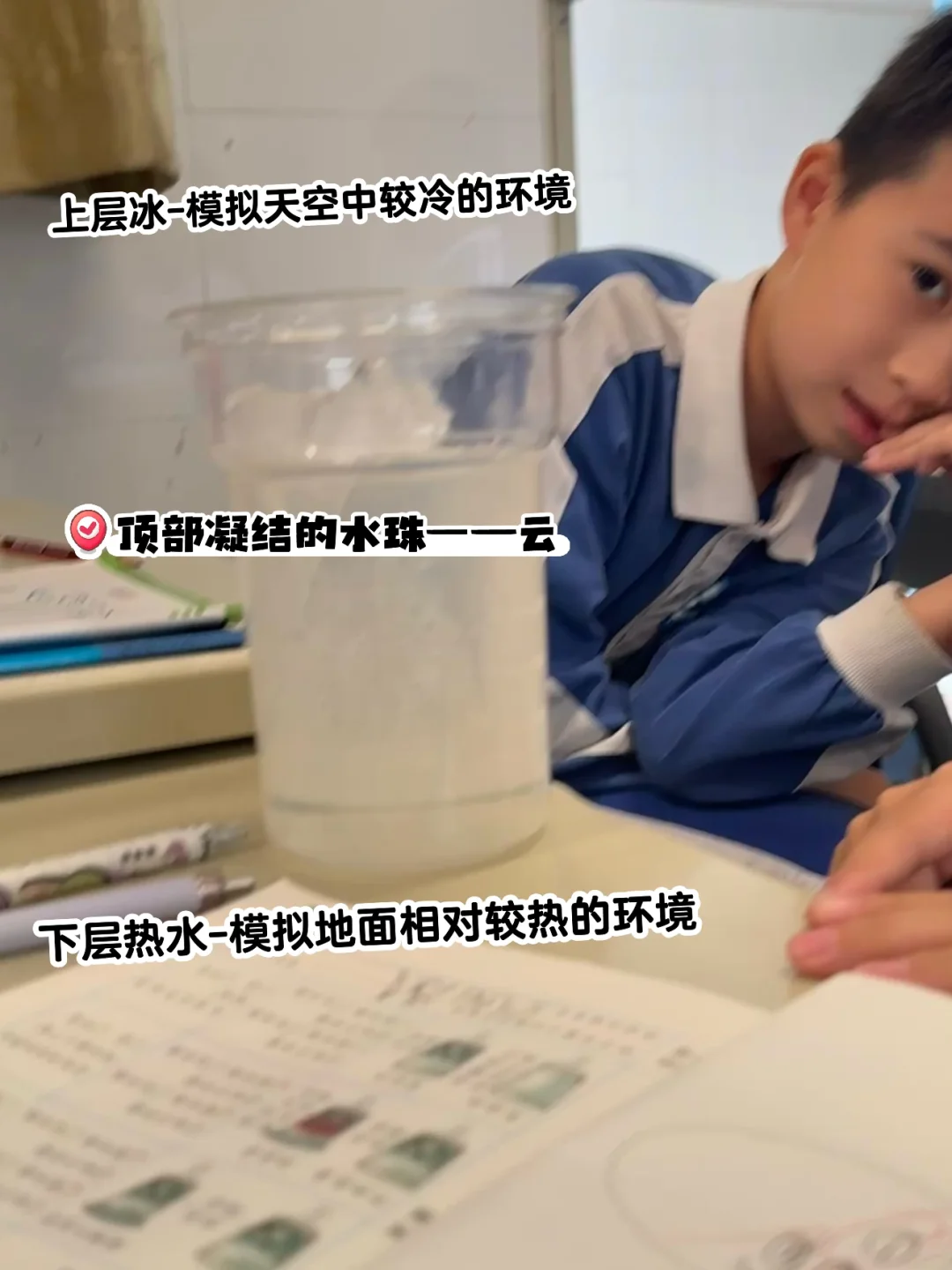 然后用实验现象解释——为什么积云、层云、卷云暗示了我们不同的降雨概率