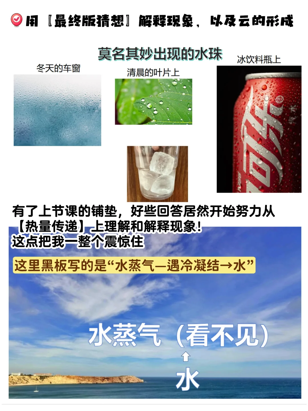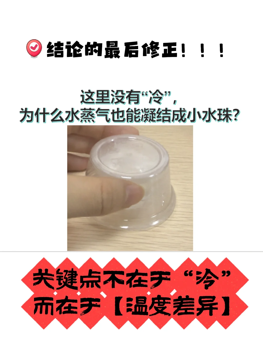 其实我初高中时一直没有完全理解【水的凝结现象】(一直会晕水结在外壁还是内壁的问题),一直没有细想去理解它,因为这个“又抽象又简单”的问题经常被上课老师几句话就带过了