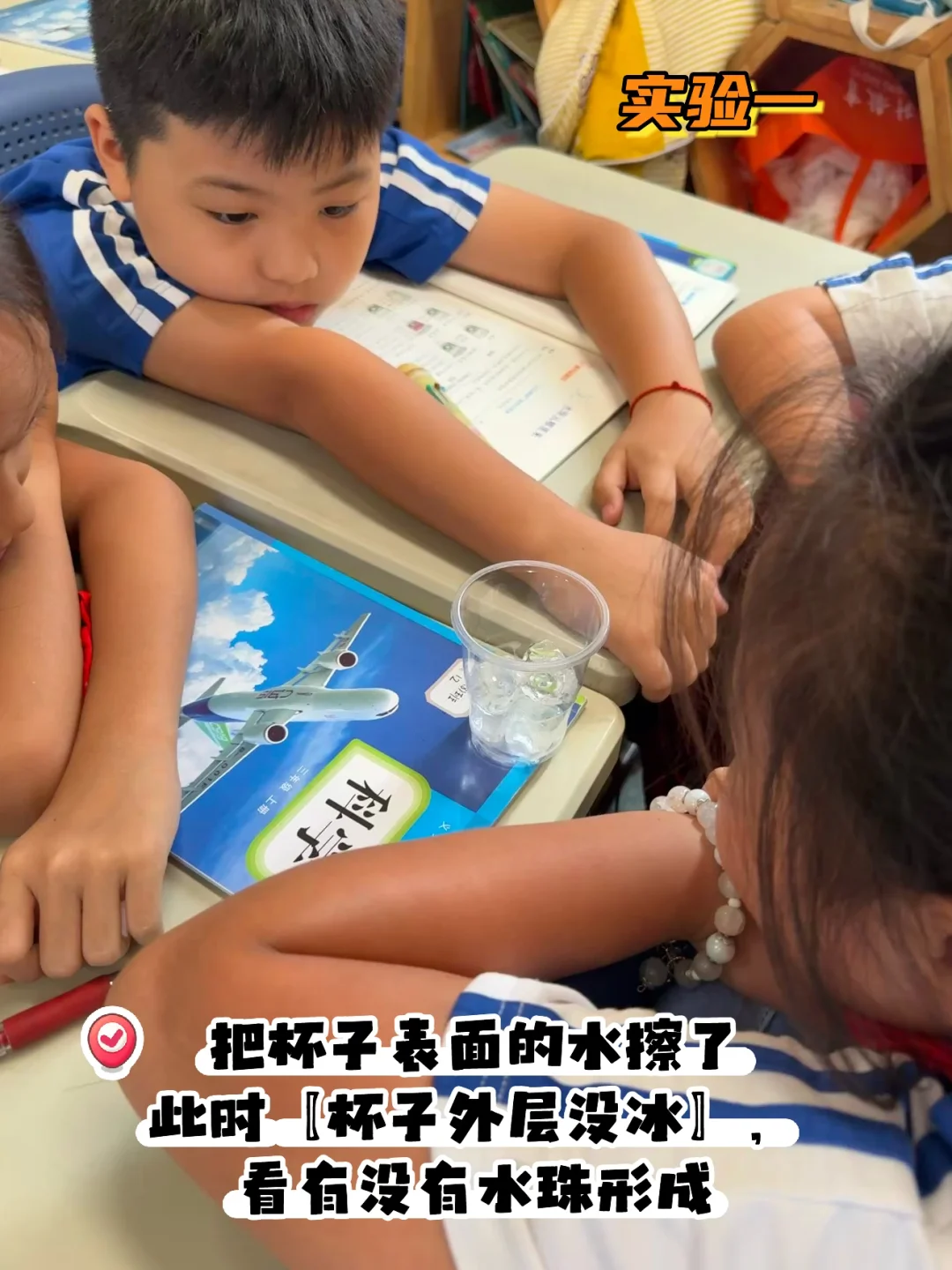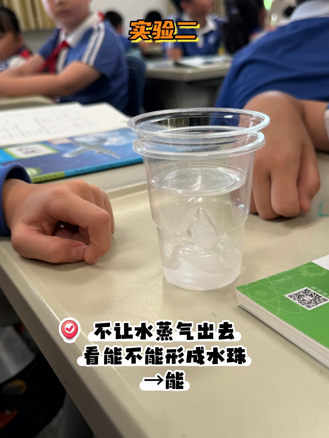 🔵实验四:将常温水倒入杯子,观察有无水珠生成