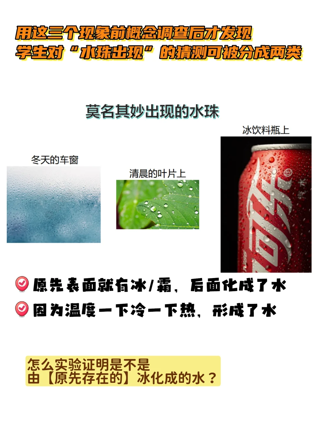 【认知冲突现象】:上节课凝结水珠的实验,没有【“冷”】