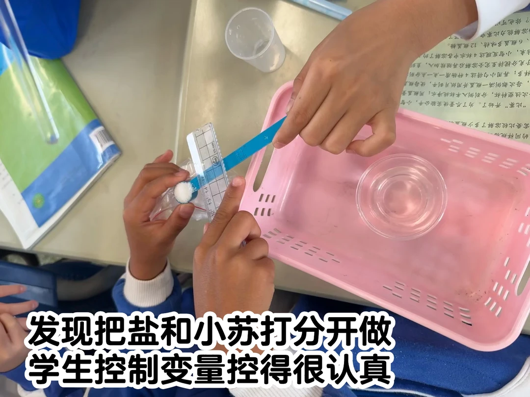 听着学生“溶了溶了!!”“老师!再来点水!”“哇!好快!”