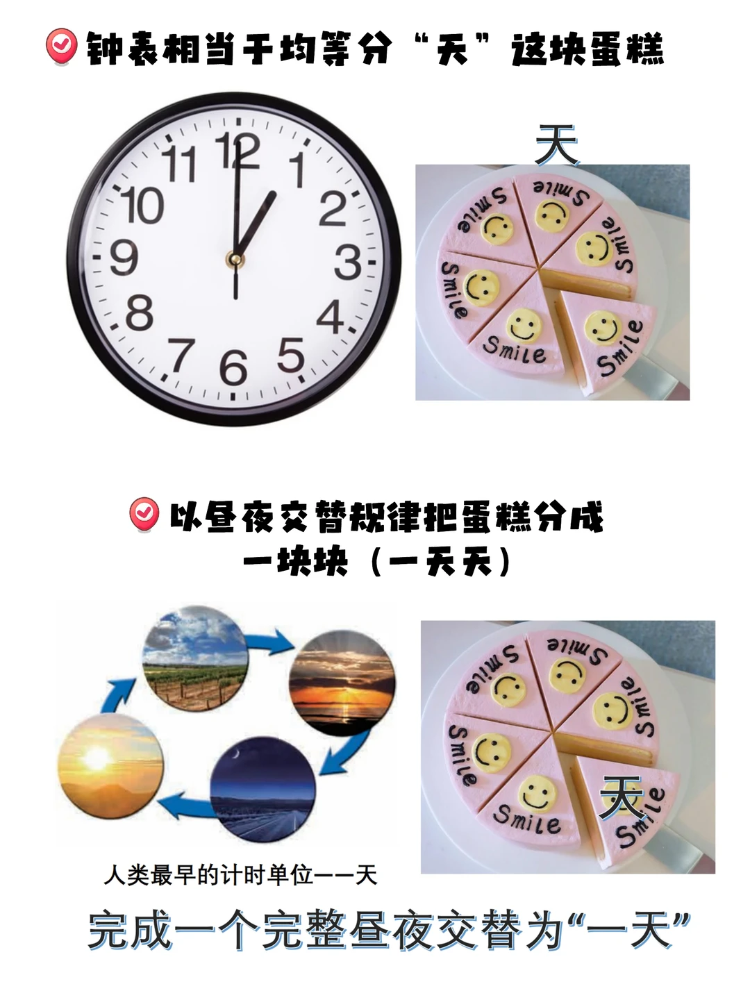 📍钟表:把1分钟的“蛋糕”【均等】切成60块,每块1秒;把1小时的蛋糕也切成60块,每块1分钟