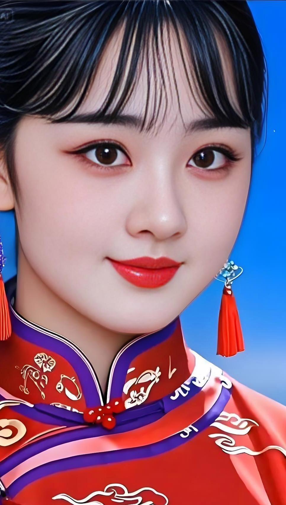温婉优雅的东方美人,红白相间的旗袍,尽显古典韵味。