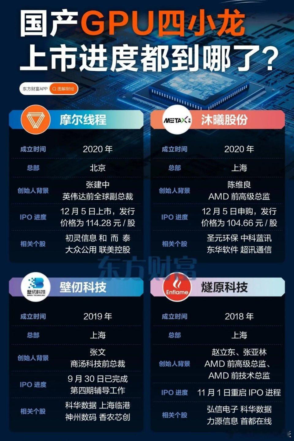 今天,摩尔线程率先上市!此外,国产GPU“四小龙”都要上市啦,这可太让人期待了!短短数年,“四小龙”发展到这程度,离不开众多投资机构支持,上百家机构砸下上百亿。期待它们上市后,能在国产GPU领域创造更多惊喜!