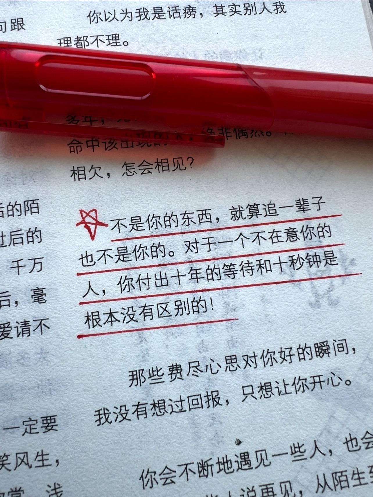不是你的东西,就算追一辈子也不是你的。对于一个不在意你的人,你付出十年...