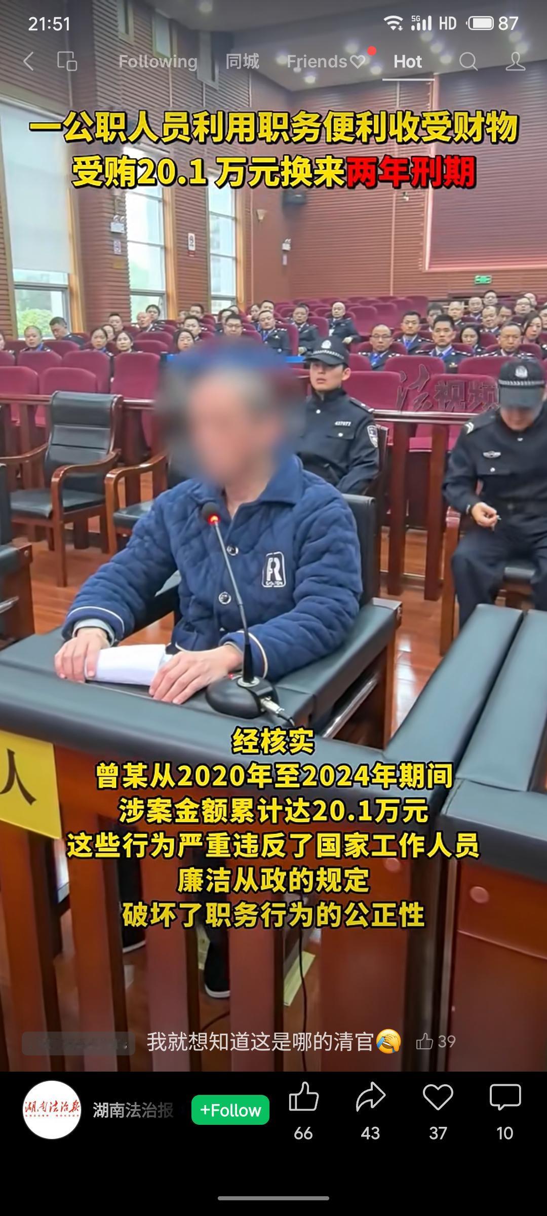 公职人员曾某利用职务便利受贿20.1万元,获刑两年并处罚金13万元。其因自动投案、认罪认罚且退缴全部违法所得获从轻处罚。该案警示职务廉洁红线不可触碰,亦体现认罪认罚从宽制度的适用。