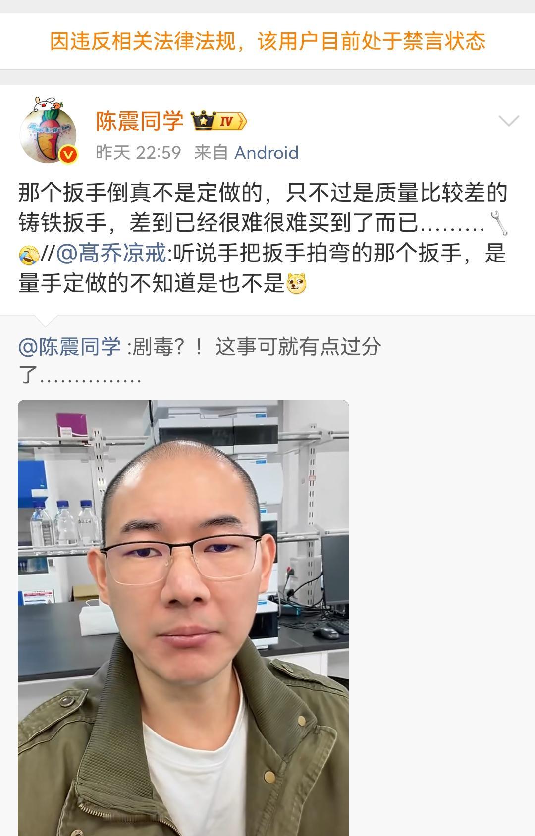 知名网络大V陈震,因违反法律法规,目前账号处于禁言状态! 陈震还是因为在网上发言引发的争议太大了,为了吸引流量喜欢拿小米过来开涮,对企业的正常经营造成了干扰。 虽然有时候他不会直接说出小米公司,但是明眼人一眼就可以看出这是在内涵。 各位是怎么看的?欢迎评论区留言。