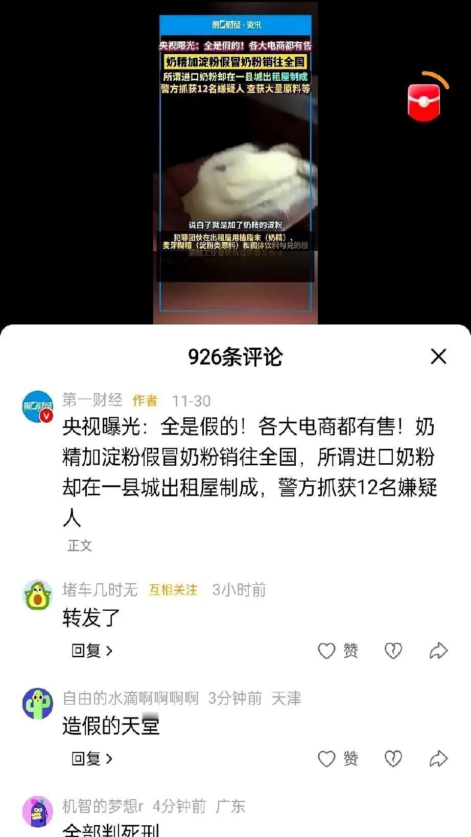 我勒个去,刚刷到央视新闻,背后一凉。 你花大价钱,托关系,熬夜从海外旗舰店抢回来的那些“进口奶粉”,什么驼奶、羊奶…… 结果呢?可能就是国内某个犄角旮旯的小作坊里,拿淀粉兑奶精给你“冲”出来的。 家长们咬牙砸钱的样子太真实了,总觉得“进口”俩字就是品质保证,哪怕比国产贵三倍也心甘情愿。谁能想到,所谓的“海外奶源”“国际配方”,可能只是包装上的噱头。 去年市场监管总局曝光的案例触目惊心,某款热销“进口驼奶”,蛋白质含量仅为标注值的三分之一,其余全是麦芽糊精和香精。这些作坊连基本的无菌车间都没有,徒手搅拌灌装就敢贴洋标签。 更讽刺的是,很多“海外旗舰店”根本没有海外实体,发货地全是国内小县城。消费者查物流时看到“保税区发货”就放心,殊不知保税仓只是货物中转,和产品真假毫无关系。 这些商家摸准了家长的软肋——为了孩子健康不惜代价。他们用华丽的外文包装、虚假的检测报告,把成本几块钱的劣质粉,炒成几百块的“高端进口货”,赚的全是黑心钱。 最让人心寒的是对孩子的伤害,长期喝这种“伪奶粉”,蛋白质、钙等营养素严重不足,会直接影响生长发育。有家长发现孩子喝了半年身高体重没增长,去医院检查才知道奶粉有问题。 其实辨别真假没那么难,先查品牌海外注册信息,再看配料表第一位是否为“生乳”,最后通过国家食品安全溯源平台核验。别被“进口”滤镜蒙蔽,国产正规品牌的检测标准一点不逊色。 监管部门也该加大力度,不仅要查生产环节,更要严打电商平台的虚假宣传。那些挂羊头卖狗肉的商家,必须付出沉重代价,才能让家长们买得安心。 各位读者你们怎么看?欢迎在评论区讨论。