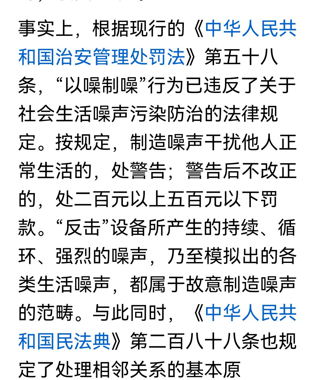 遇到屡屡制造噪音而且不接受沟通的楼上恶邻,应该怎么办?千万不要过激,我们有更好的办法。 住楼房就是这样,如果遇到个不自觉的总是以自我为中心的楼上邻居,真是很苦恼的事。不找他谈谈,他永远不知道收敛,永远不知道顾及别人的感受;去找他谈,遇到的如果是个不说理的,很可能会发生冲突,甚至闹出人命,这并不是危言耸听! 那我们应该怎么办呢?有的以噪治噪,买个振动器什么的。其实,这样做根本解决不了问题,只会激化矛盾,而且也违反了相关法律,把自己从受害人变成了违法者。 《中华人民共和国治安管理处罚法》第五十八条规定,以噪治噪是违法行为。按规定,制造噪音干扰他人正常生活的,处警告;警告后不改正的,处二百元以上五百元以下的罚款。 所以,一旦遇到这样的邻居,我们可以录音取证。一是录噪音,二是好言与邻居沟通也录下来。如果邻居态度不好,那就报警。