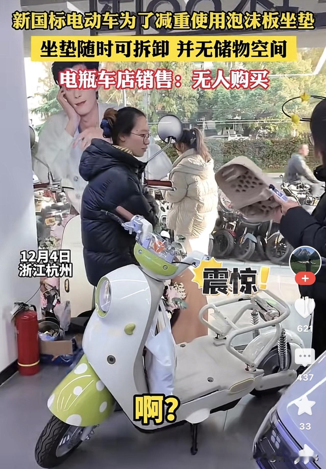 新国标电动车的迷惑操作也太离谱了!为了合规居然用硬泡沫坐垫,薄得像层纸就算了,还能随时拆卸,真是离个大谱[翻白眼][翻白眼][翻白眼] 爆料