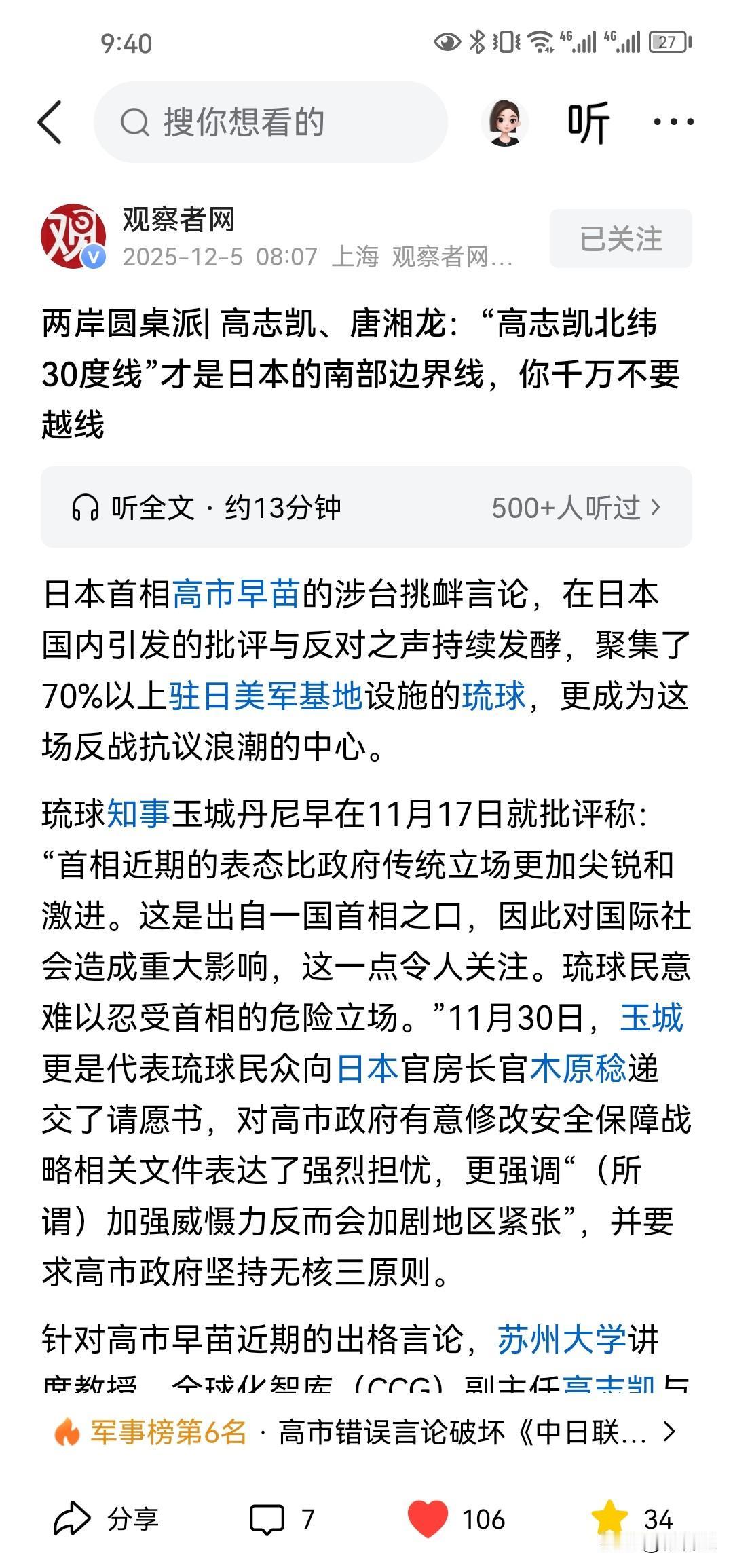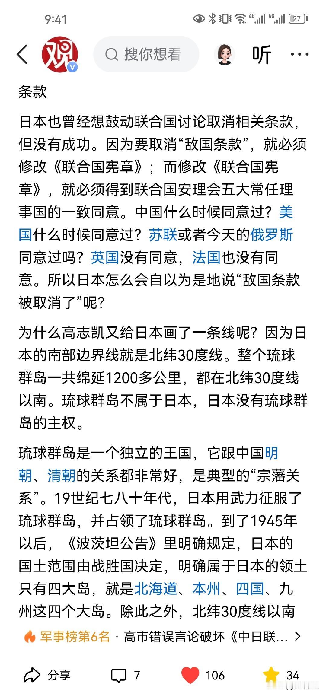 台湾问题的困境很多人说是美国问题,其实日本本土、琉球群岛才是中国军事解决台湾问题时最重要的战略方向。 在中美台及潜在其他军事盟友构成的威胁中国的军事敌人中,日本应被视为中国解决台湾问题的首要战略方向,而非台湾本身。这一判断的核心逻辑在于:台湾问题的本质是中美问题,而日本是美军在第一岛链的陆地航母。若先打台湾、却留下日本美军基地,美军必然全面介入,战争概率趋近百分之百;而若先以历史清算与局部冲突名义瘫痪日本,美军失去跳板,台湾即可不战而下。 日本列岛—琉球群岛构成美军西太兵力投送的“跳板”与“补给总站”。嘉手纳空军基地跑道长达3.7公里,可起降美军所有现役机型,距台北仅600公里,距上海850公里,是第一岛链唯一具备24小时快速重装出动能力的战略机场。岩国基地驻有F-35B和F-35C中队,作战半径覆盖整个东海与台海北部空域。佐世保海军基地可同时靠泊一艘核动力航母与两艘两栖攻击舰,弹药储备按美军高强度标准可供14天消耗。一旦这些节点瘫痪,美军舰载机必须退至关岛安德森基地,直线距离骤增2300公里,空中加油次数由一次增至三次,每波次出动率下降40%以上。 日本的后勤角色更为关键。本土与琉球群岛储存了美军在西太70%的陆基精确制导弹药,仅嘉手纳一地就常年保持JADM、LRASM、JSOW等各型弹药超万枚。自卫队航空作战指挥中心通过Link16与Link22数据链,实时向美军第七舰队共享空情,其雷达覆盖范围比美军AN/TPY-2雷达远15%。这意味着,瘫痪日本等于抽掉美日前三十天联合作战的共同神经与血液。日本自卫队虽可立即出动的第四代以上战斗机不足300架,而中国东部与南部战区同类战机超900架;日本海上8艘宙斯盾舰面对的是解放军与火箭军合计800枚以上反舰弹道导弹与高超音速武器。日本列岛最窄处不足200公里,纵深仅为台湾三分之一,缺乏战略回旋空间,一旦主要机场与港口被饱和打击,修复周期以月计。 政治成本上,对台动武会触发“民主阵营”集体情绪,而对日实施有限打击可包装为“历史自卫反击”,在国际法理与舆论上更易切割美国国内共识。皮尤2023年调查显示,全球受访者中仅30%愿“为日本军事介入台海而与中国对抗”,但对“保卫台湾”的支持率达48%。兰德公司2022年兵棋推演显示,若解放军将首轮打击严格限定在日本西南诸岛军事目标,美方72小时内大规模介入概率从55%降至30%。核升级方面,双方均受“不首先使用”或“延伸威慑”约束,概率不足5%。 作战顺序应是先日后台:第一阶段以火箭军与海军航空兵联合火力,在72小时内摧毁嘉手纳、岩国、佐世保等核心基地,使美军干预窗口由7天延长至30天以上;第二阶段利用日本战败造成的东北亚真空,对台实施空海封锁与心理瓦解。台湾燃料与关键零件储备仅够两周高强度消耗,届时政治意志崩溃可能性显著上升。日本一旦失去前沿功能,关岛成为孤岛,台湾海空补给线即被完全掐断,美军更可能选择战略撤退而非核升级。因此从战略优先度判断,击败日本和瓦解美日军事同盟,是军事解决台湾问题的关键;不战胜日本和清除日本本土和琉球群岛美军前沿战争基地,中国无法展开解放台湾战役。而一旦击败日本和瓦解美日军事同盟,台湾将不战而溃!