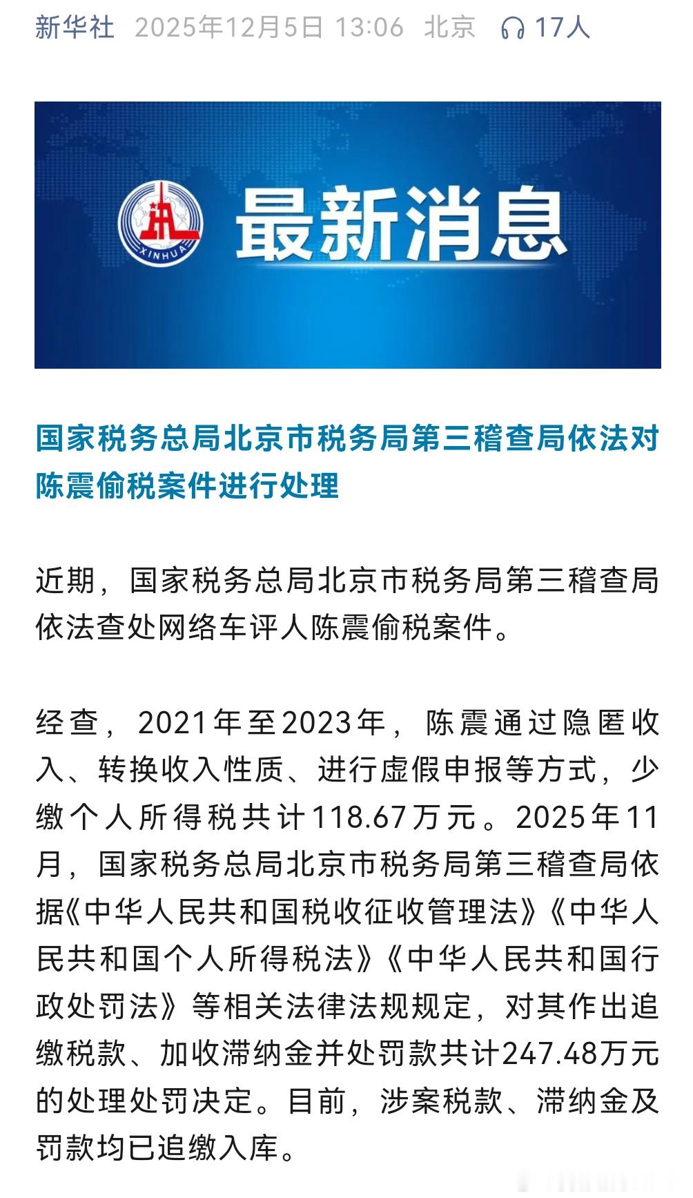 央视,新华社报道……陈震偷税案这就没法评论了陈震偷税案