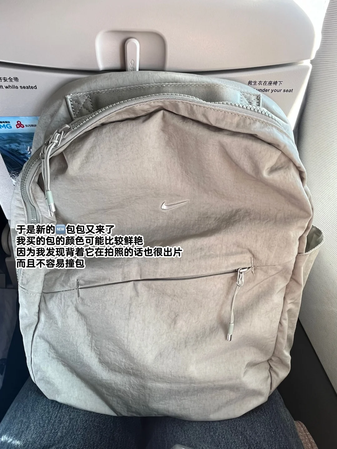 稍微出远门就发现了 其实大家背双肩包的还挺多的 但是挑双肩包还是很难挑的 这个dickies的包我背了5年了!终于能退休了! 又入手了nike的这个双肩包🎒 不过买这个豆沙绿的还蛮少的~希望不要撞包 我觉得两个颜值和实用性都兼顾了!