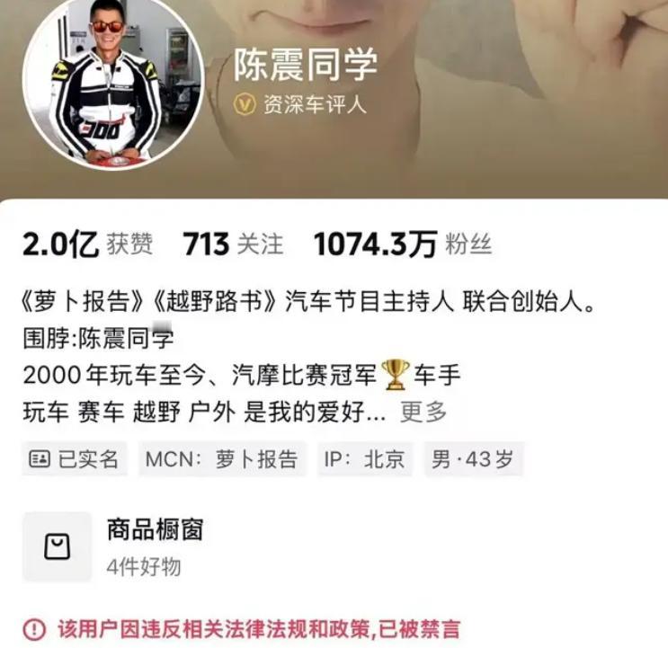 多个社交媒体平台账号已被禁言知名车评人陈震偷税被查 12月5日,央视新闻发文,