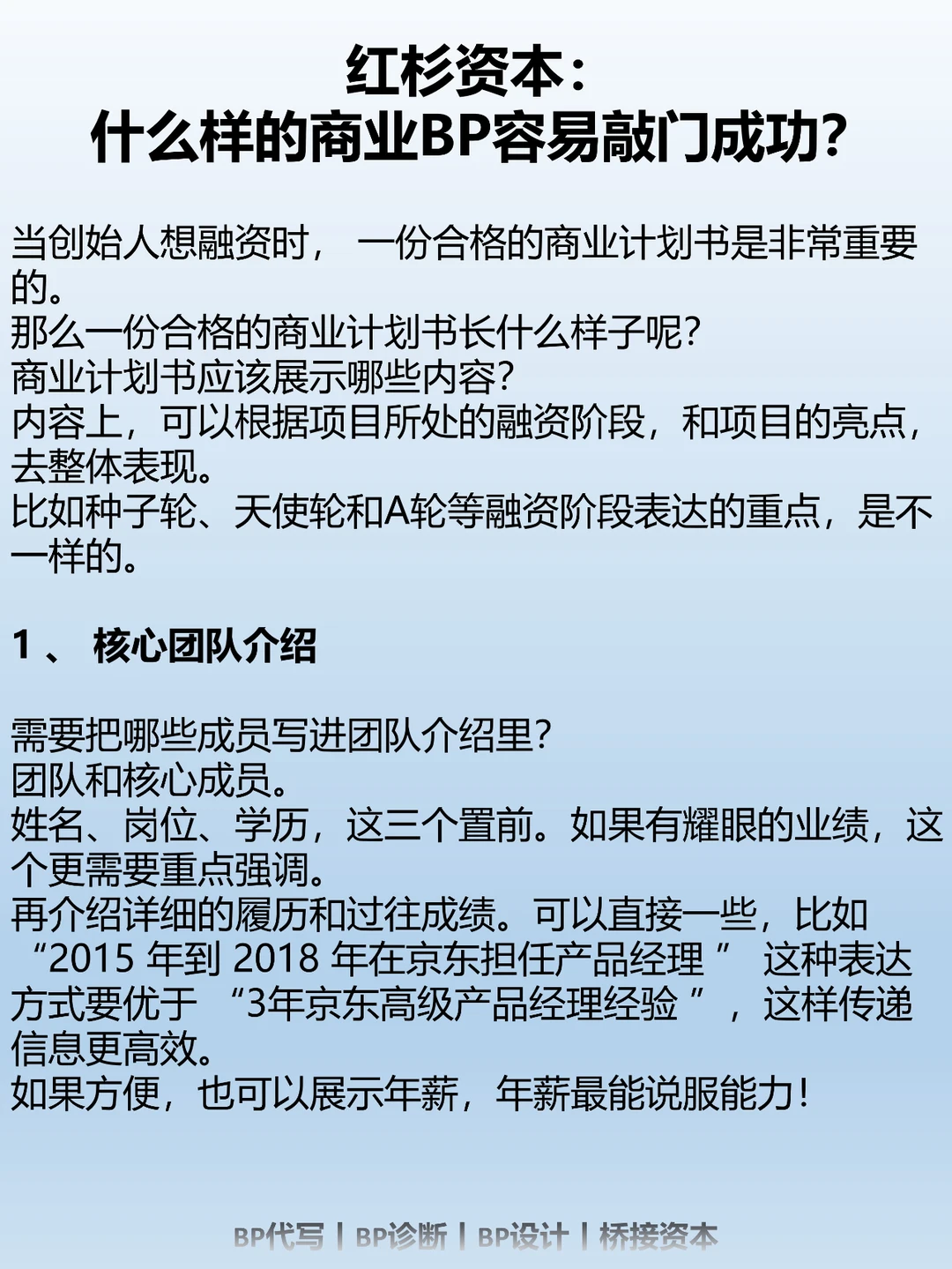 内容上,可以根据项目所处的融资阶段,和项目的亮点,去整体表现。