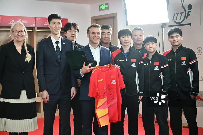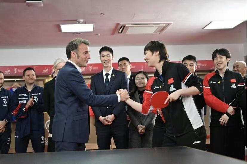 马克龙与王曼昱的互动瞬间,王曼昱这气质绝对是典型的强者风范,在马克龙面前也是不卑不亢,游刃有余! 马克龙今日下午离开中国前,来到成都体育馆,与正在成都参加ITTF混合团体世界杯比赛的法国队和中国队一起做活动,王曼昱作为国乒运动员之一参加了活动,镜头下记录马克龙与王曼昱互动瞬间! 可以看到马克龙与王曼昱握手时眼里都是欣赏之情,王曼昱本人也是不卑不亢,很好的代表了中国奥运冠军的品性!