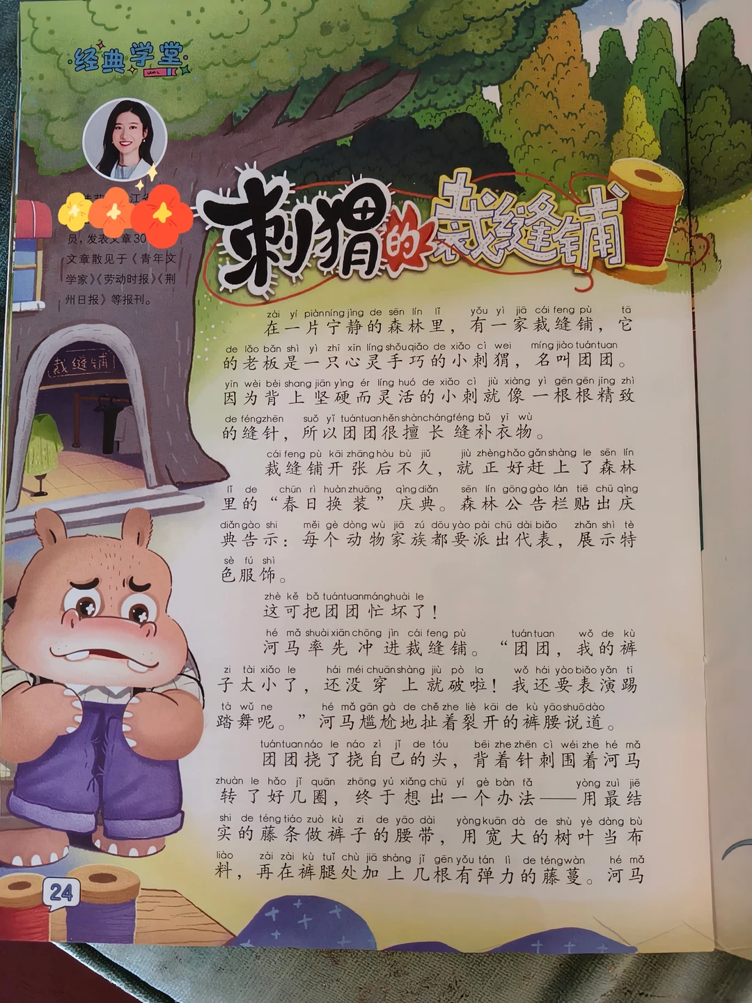 其实我开始认真写儿童故事也是近一两年的事。这次收到样刊的这篇,灵感来源于另一个童话故事,螃蟹做理发师,我就想,还有什么和动物匹配的职业。然后就想到了🦔。写完后,精心修改了几遍,然后就投出去了。没想到,等了一段时间后,竟然收到了编辑老师的回复!还提了一些特别专业的修改意见,我赶紧按照建议认真改好发回去。再然后,就是今天这份沉甸甸的样刊啦[偷笑R]5个经验来啦~