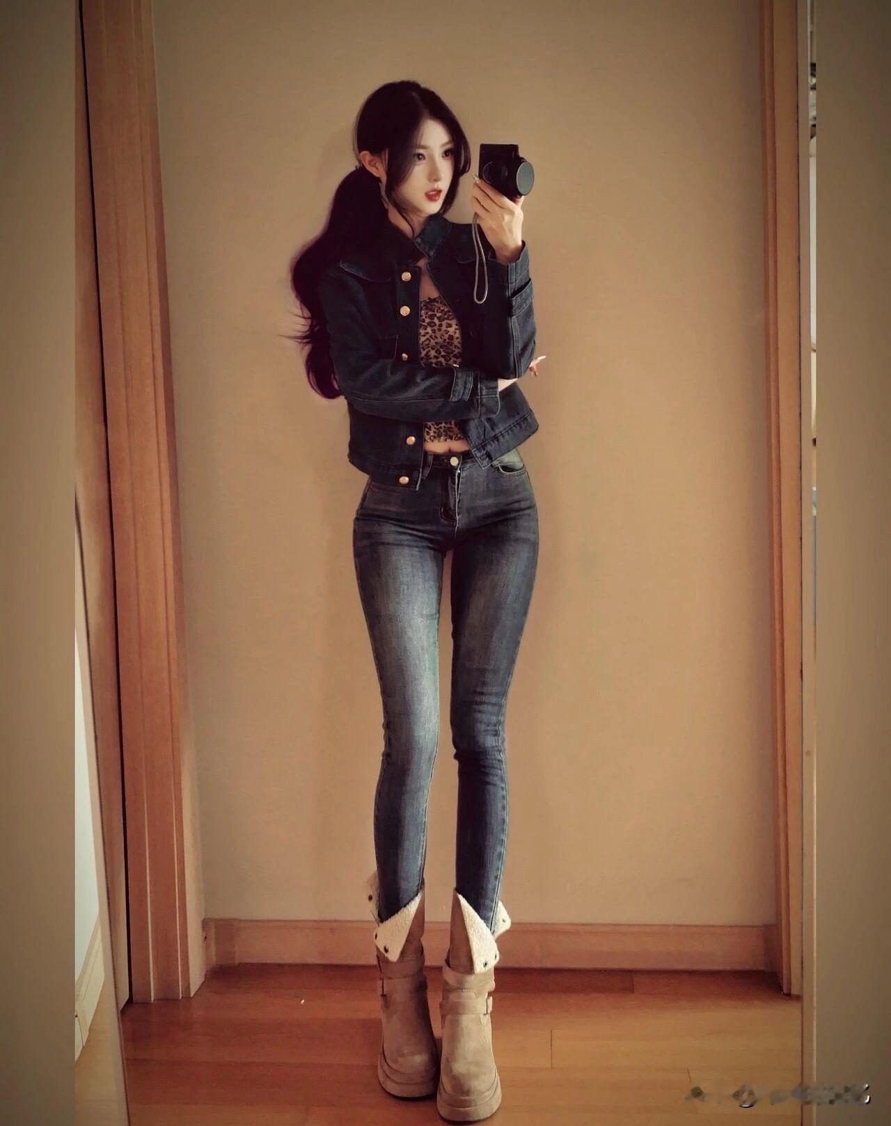 救命!短牛仔外套搭紧身裤,一上身就是腿长两米八的辣妹本体![比心][比心][比心][比心] 中高腰牛仔穿搭 牛仔短款穿搭