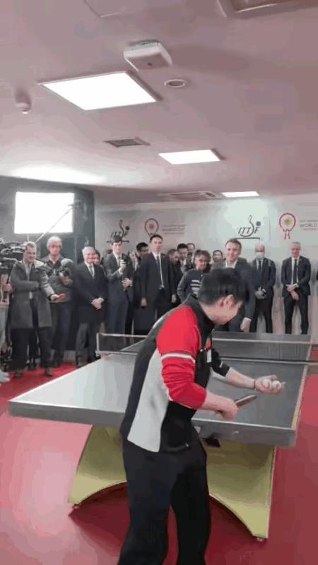 马克龙和王楚钦、孙颖莎打乒乓球混双,看他打球的姿势,有模有样,还使用反手拍,真挺厉害! 12月5日,法国总统马克龙访问了四川成都体育馆,在那里和国乒们热情互动。 穿着西装,但是白衬衫没系领带,显得休闲又松弛。 马克龙还点名和王楚钦、孙颖莎一起对练,虽然接连吃了莎莎两球,但是依旧很开心,还坚持让莎莎继续发球。 不过总统的球技还是相当不错,使用反手拍,身姿矫健,也很是灵活。 一大清早晨跑,到了川大又一路小跑和围观群众握手,接下来又打球,真是活力满满啊!