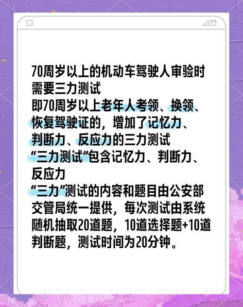 70岁老年人考驾注意,除三力测试外,这3点很重要,教练都知道 咱们老百姓眼里,70岁考驾照不算易事,除了必过的“三力测试”,不少老伙计总忽略些关键细节,其实教练早把门道摸得透透的,这3点记牢了,考驾能少走不少弯路。 1. 选对车型别跟风。别听人说“大车气派”就盲目选,咱们老年人反应和体力不如年轻人,优先选轴距短、方向盘轻的小型自动挡车,练车时转弯、停车都灵活,教练常说“选对车,等于赢了一半”。 2. 练车节奏别赶急。不少老伙计怕拖累进度,硬撑着一天练四五个小时,反而记混步骤。按教练的建议,每天练1.5小时就行,练完回家花10分钟回想操作要点,慢工才能出细活,还能避免腰酸背痛。 3. 考前心态别慌神。考场里机器多、考官严,容易紧张得忘步骤。教练支招,候考时多深呼吸,把考试路线在脑子里过一遍,上车后先调座椅、系安全带,等心情稳了再起步,比慌慌张张开考靠谱多了。 考驾照不是年轻人的专利,但咱老年人得按自己的节奏来,把这3点做到位,拿证也能顺顺利利!中老年人驾照