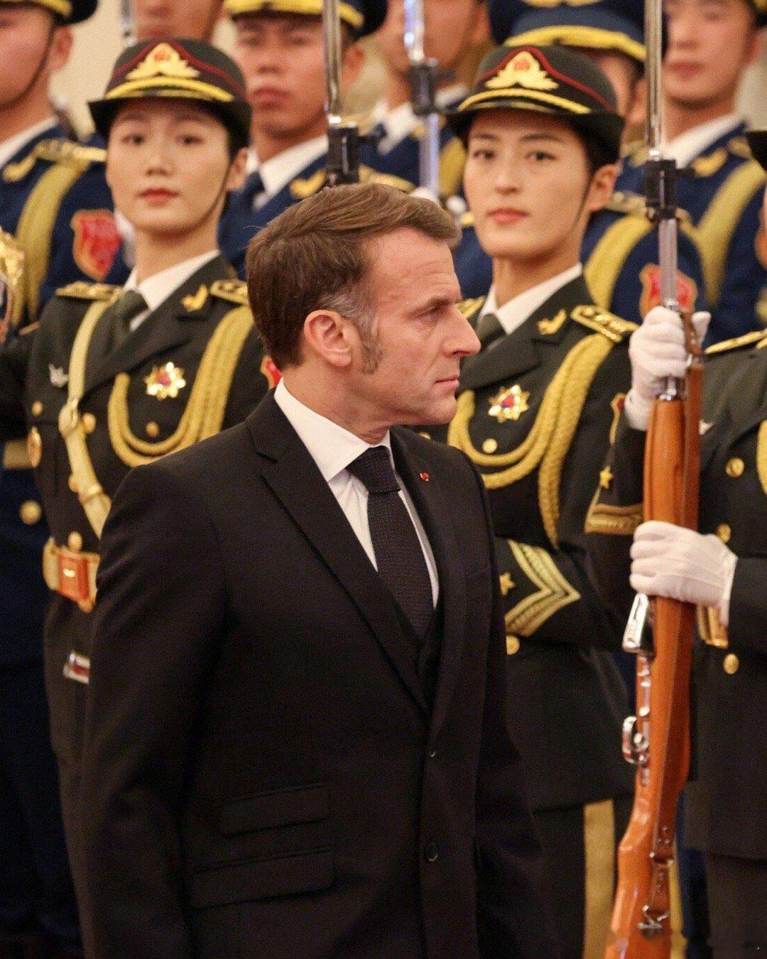 马克龙访华时检阅中国仪仗队的一幕,不仅让法国民众被中国军队的威武气势震撼,还因他
