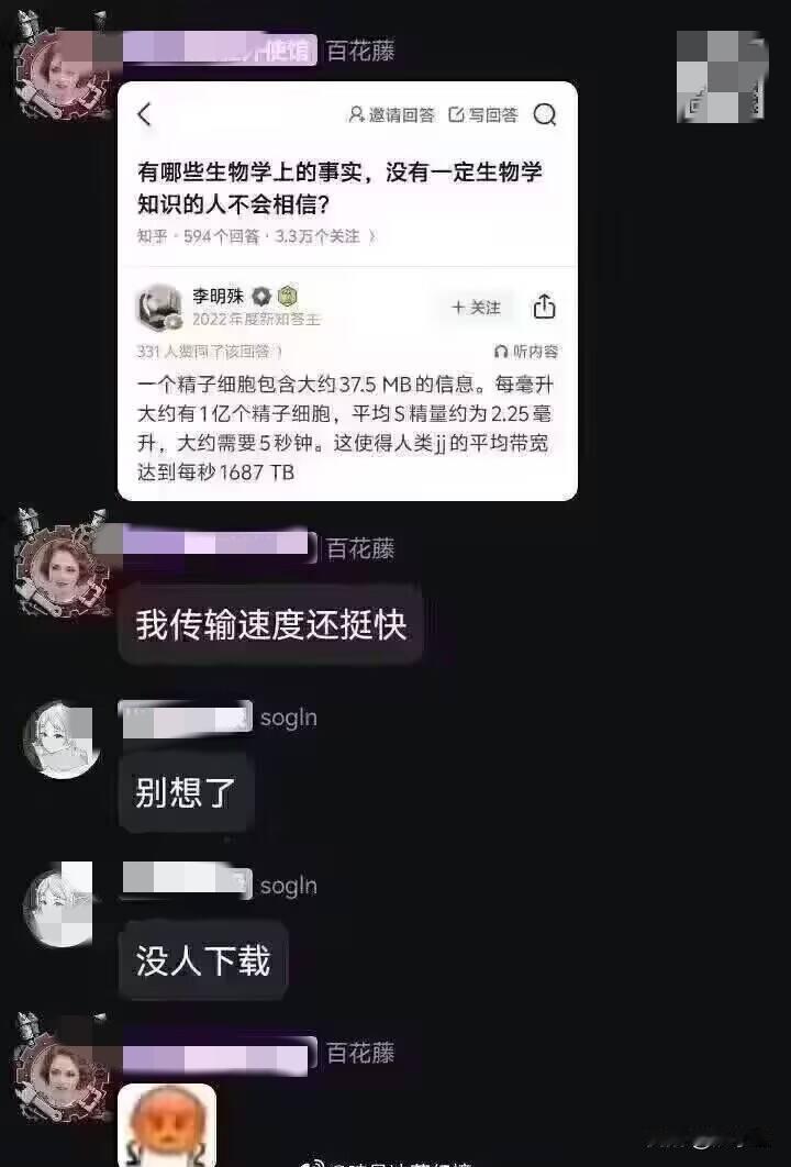 哈哈,太尴尬了!你速度再快,也找不到适合的配偶! 因为,第一,你现在还用路由器传输,别人都上光猫了! 第二,你用的是普通带宽,别人都用卫星传输了! 第三,你就算用了这些装备,别人都无线传输啦! 哈哈,降维打击,没人下载的!