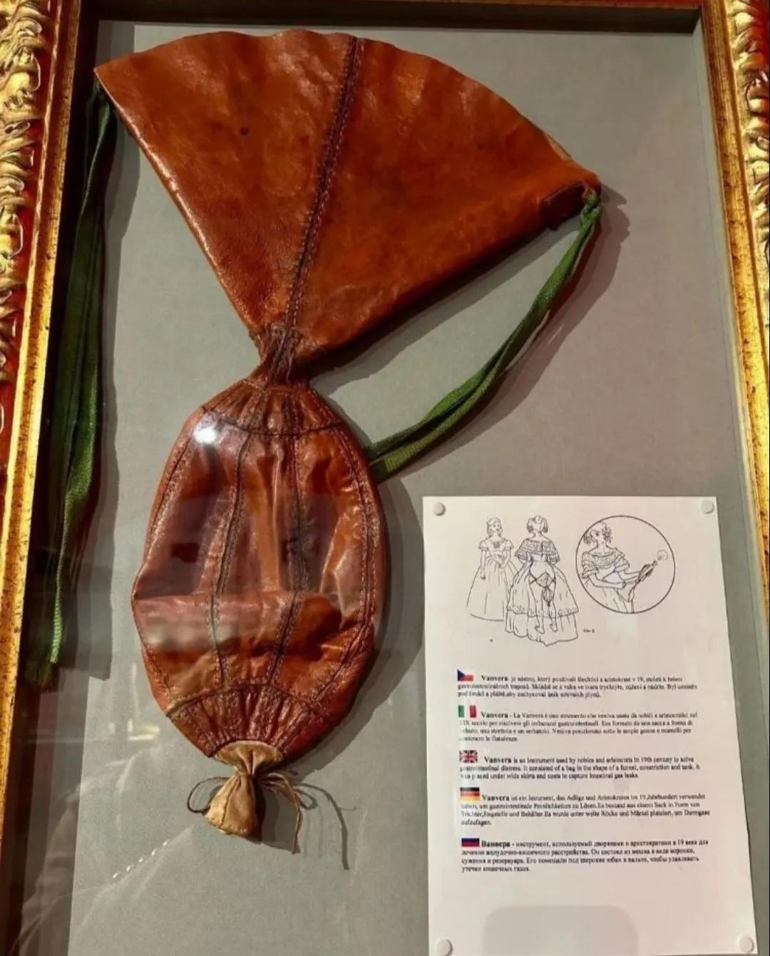 以前马车进城时,马屁股后面要装一个兜子,以免马粪拉在马路上,污染环境,在欧洲古代,人的身上也会戴一个类似的玩意儿,那些贵族太太小姐们,最害怕的就是在社交场合放屁,那样会毁了她们的淑女形象,但放屁是生理现象,往往是控制不住的,那怎么办呢?为了保持优雅,她们就会戴一个屁袋,放屁时气体进入屁袋就不会泄漏了,而且她们都穿蓬松的长裙,屁袋在裙子里面,外人是看不见的。