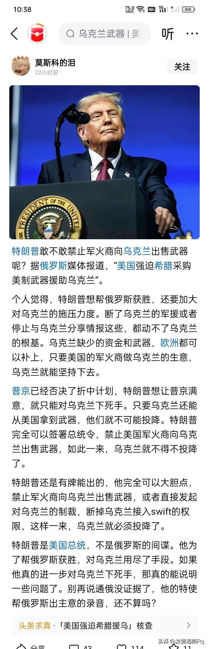 鱼和熊掌能兼得? 美国好像为了从俄罗斯得到异乎寻常的超级大额经济利益,极力推动乌克兰割地和平,并与此同时,多次宣称将不再对进行包括军事援助在内的各种援助,甚至是还扬言,要停止向乌克兰军队提供情报等方面的支持。 然而,网络上又有消息说,美国驻希腊大使受到美国政府的指示,向希腊政府施压,要求希腊加入“乌克兰需求清单(PURL)”,购买美国的武器转交乌克兰军队作战。那么,这是不是就是说,美国既想挣乌克兰继续战争的钱,又想挣乌克兰战争停火的钱呢? 按照一般的说法,鱼和熊掌不可兼得,或者很难兼得。但美国总统特朗普,似乎想要创造奇迹,就是要违背常理,一定要鱼和熊掌兼得呢? 但是,实际上,世界上可能绝对不仅仅美国人聪明,其它国家的人似乎也绝对都不是傻子。如果他们的国家既然愿意支持和援助乌克兰,估计万万不会愿意乌克兰割地换和平。