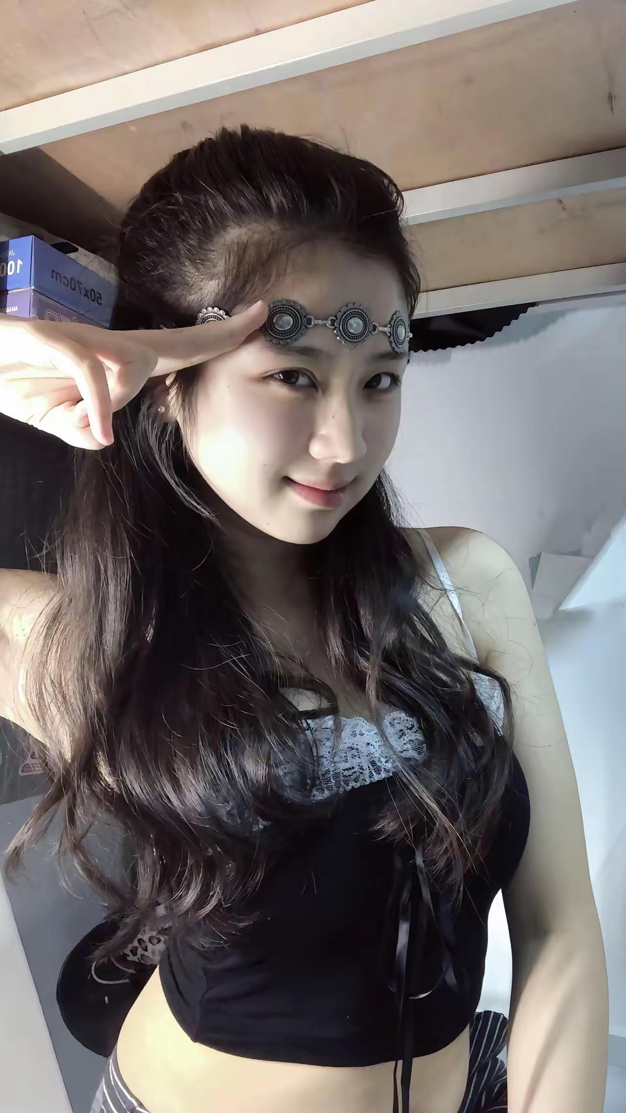 甜美少女风,自拍凹造型,可爱发饰点缀,轻松展现青春活力!🌟💖📸