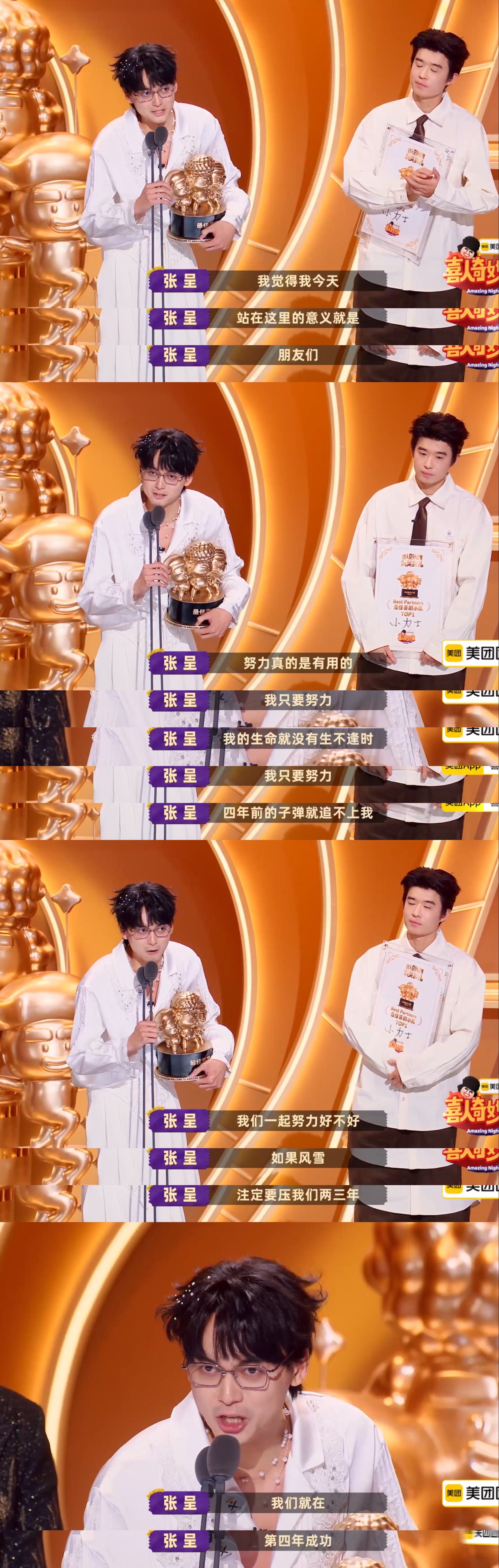 张呈获奖感言喜人奇妙夜 “陪我回来大闹一场”太戳心!张呈雷淞然双向奔赴,信任是夺冠底气~
